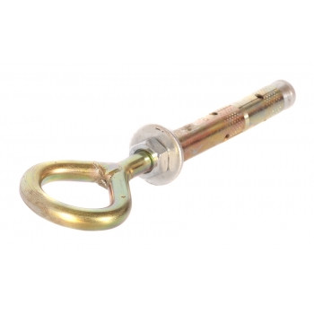 Анкер двухраспорный с кольцом состоит из шпильки с резьбой с одной стороны и заваренным кольцом с другой, как и обычный двухраспорный анкер он имеет 2 или 3 распорные гильзы и распорную часть на конус снизу. Для облегчения процесса монтажа комплектуется гайкой.Предназначен для крепления тяжеловесных подвесных конструкций, в случаях когда требуется надежное не разъемное соединение. Часто применяется в такелажных работах для зацепки троса или цепи больших диаметров, как правило используют трос стальной, реже синтетический канат.Применяется при работе с бетоном, полнотелым кирпичом, природным камнем.Изготовлен из стали, покрытый - желтым цинком.