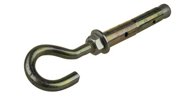 Анкер двухраспорный с полукольцом состоит из шпильки с резьбой с одной стороны и полукольцом с другой, как и обычный двухраспорный анкер он имеет 2 или 3 распорные гильзы и распорную часть на конус снизу. Для облегчения процесса монтажа комплектуется гайкой.Предназначен для крепления тяжеловесных подвесных конструкций, в случаях когда требуется надежное не разъемное соединение. Часто применяется в такелажных работах для зацепки троса или цепи больших диаметров, как правило используют трос стальной, реже синтетический канат.Применяется при работе с бетоном, полнотелым кирпичом, природным камнем.Изготовлен из стали, покрытый - желтым цинком.