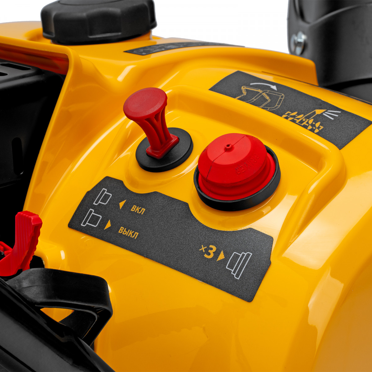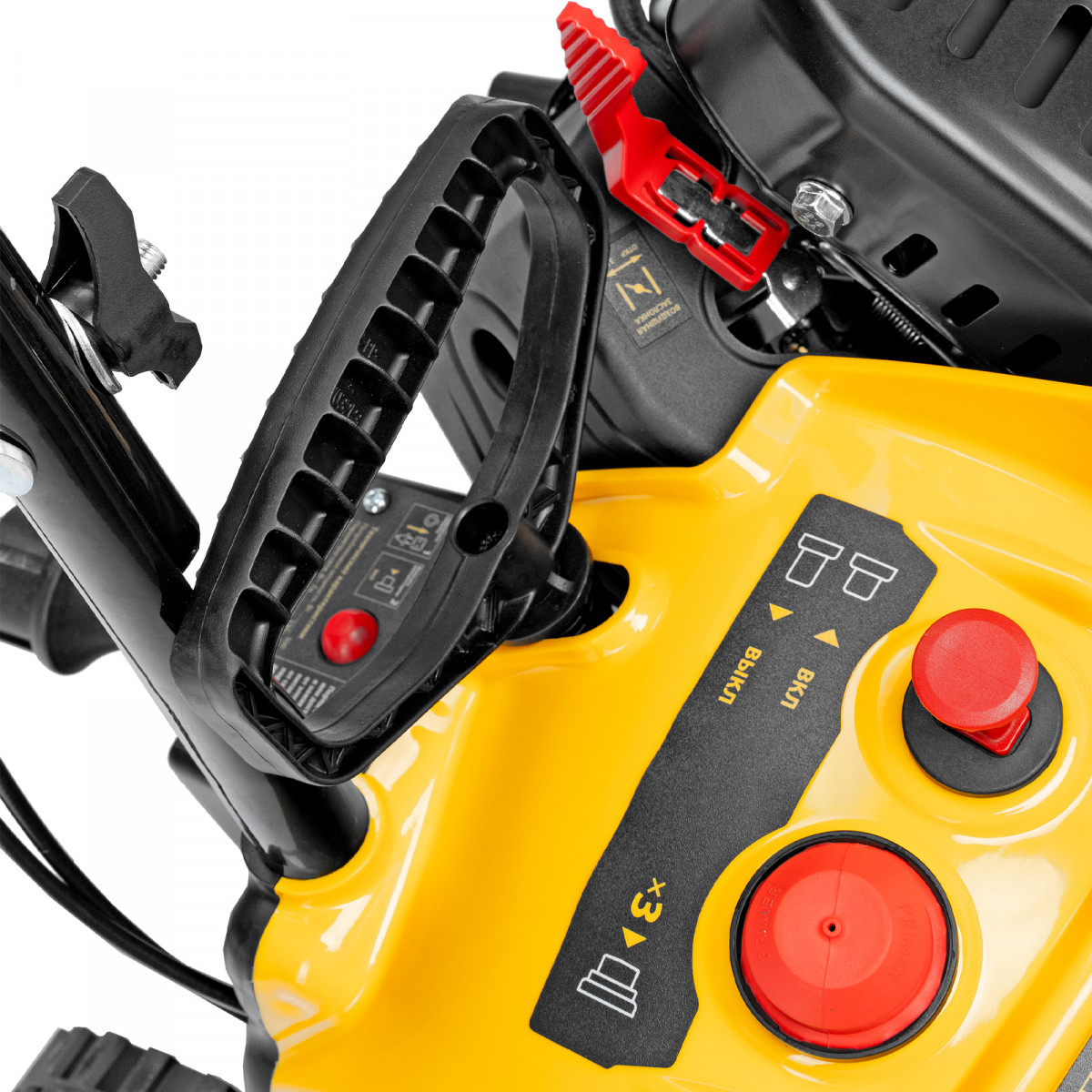 • Удобное управление — широкая рукоятка ручного старта облегчает запуск двигателя, для регулировки угла поворота желоба не нужно наклоняться.