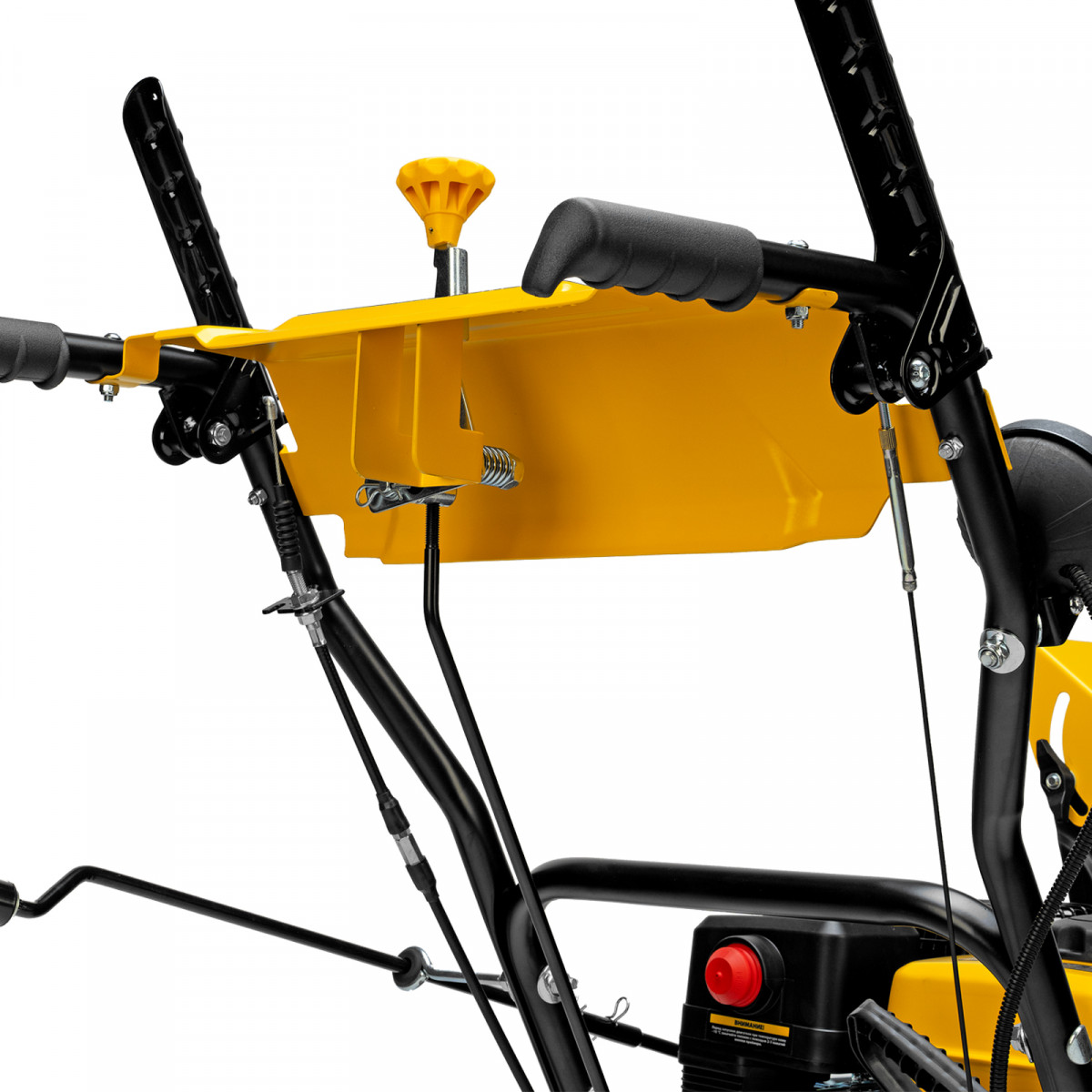 • Надежная конструкция — высокая стальная панель придает жесткость раме и повышает комфорт использования бензинового снегоуборщика.