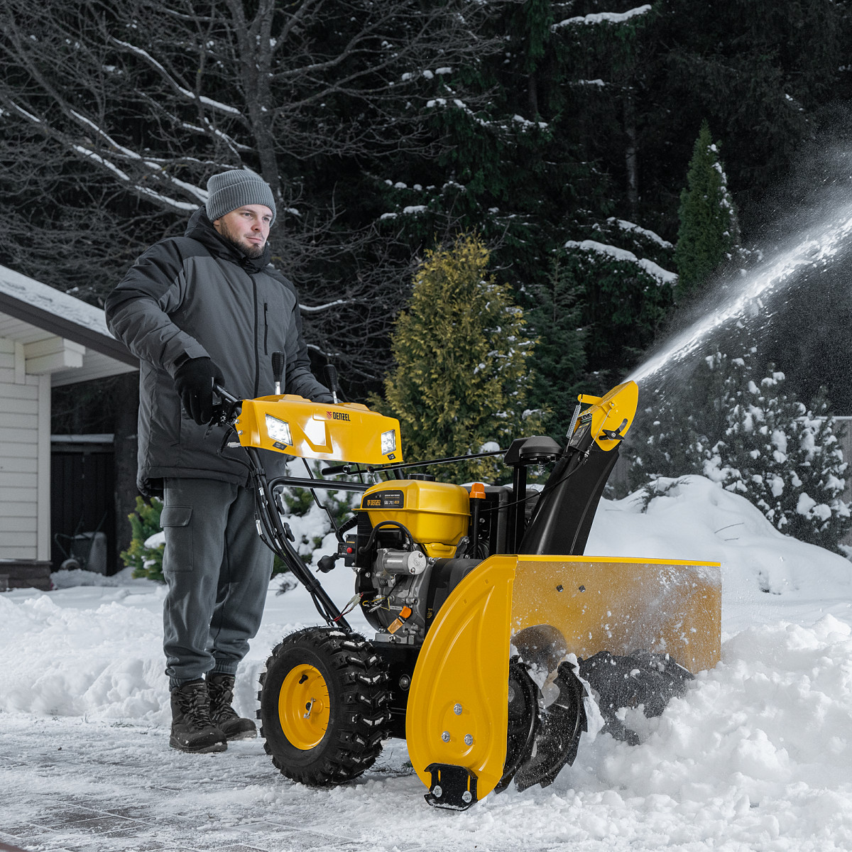 - Выбор направления и дальности выброса снега — угол поворота и наклона желоба легко меняются на панели управления в зависимости от потребностей пользователя.