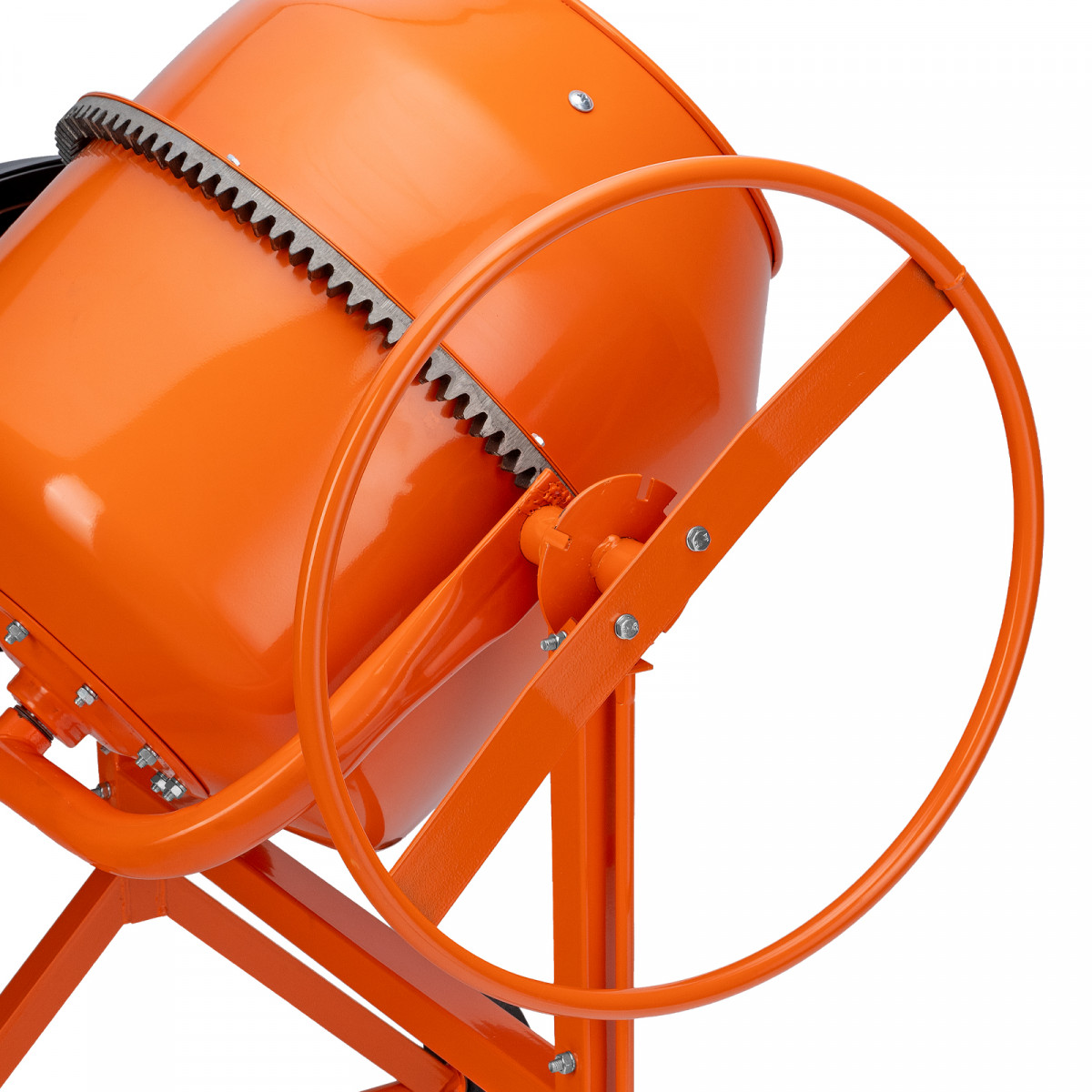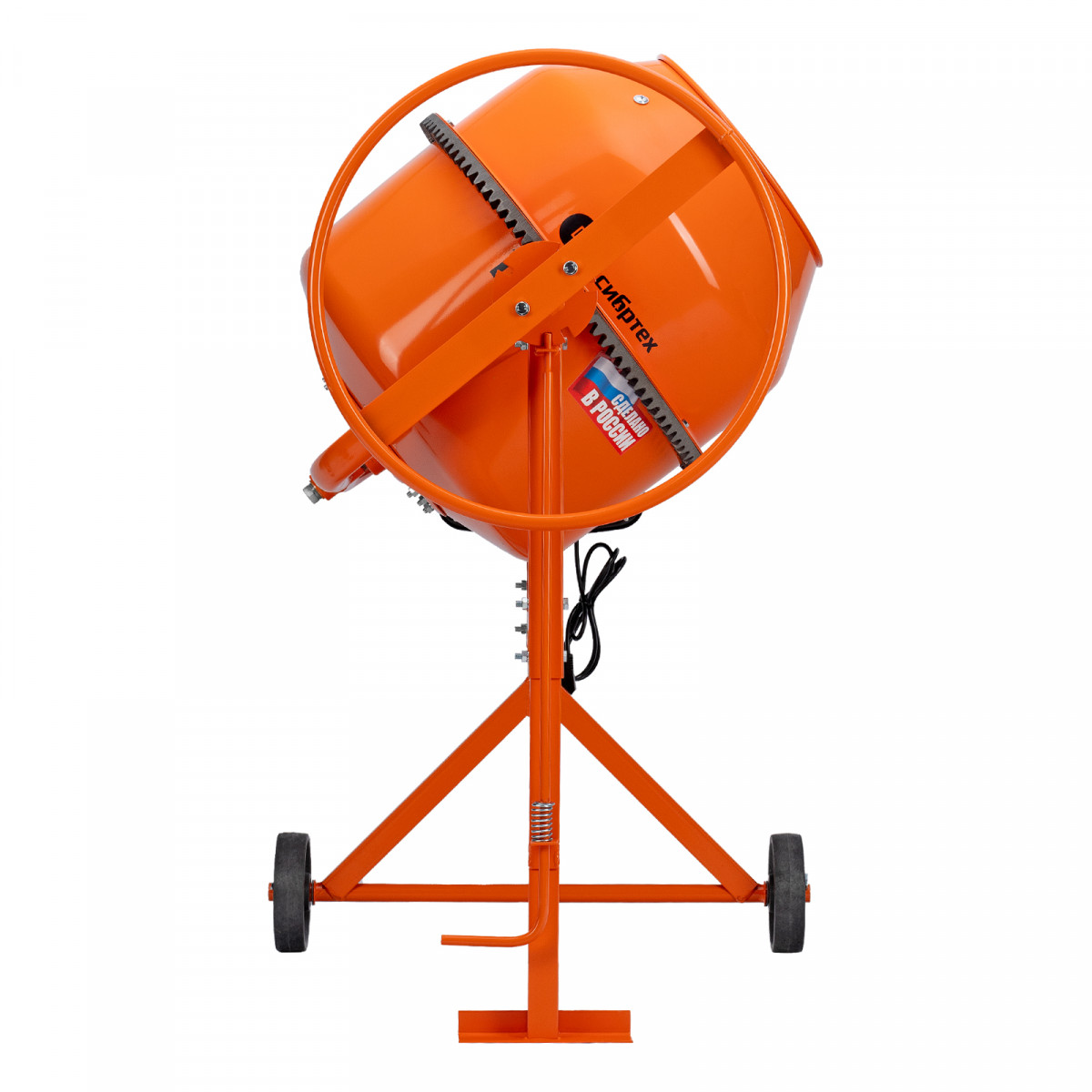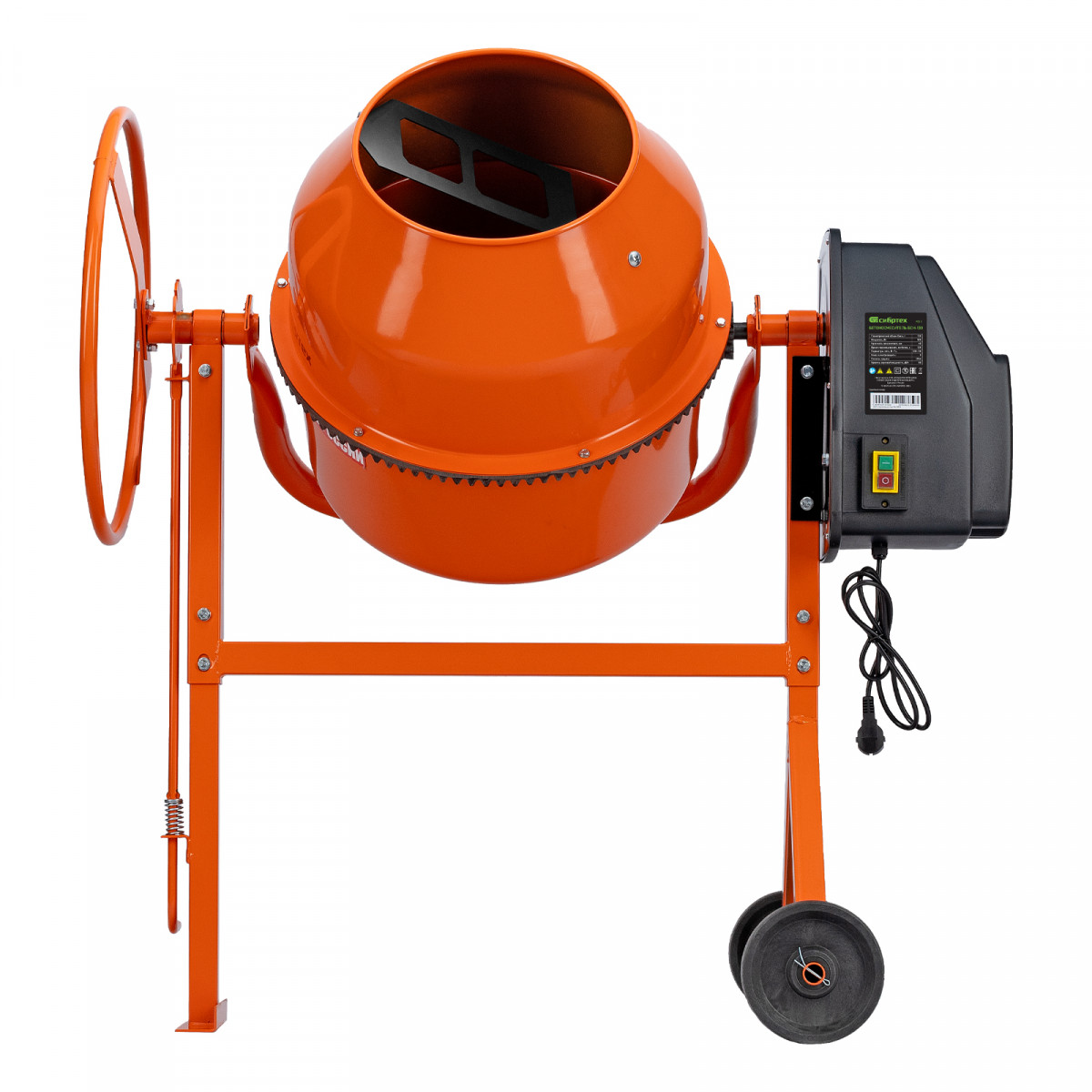 • Удобная загрузка и выгрузка смеси — барабан наклоняется при помощи маховика и легко фиксируется в нужном положении.