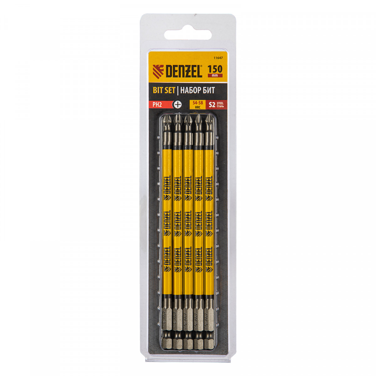 Бита PH2х150, сталь S2, цилиндр., 5шт. Е 6,3 Denzel