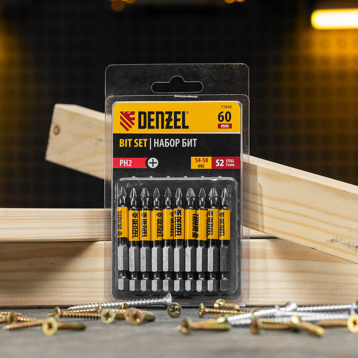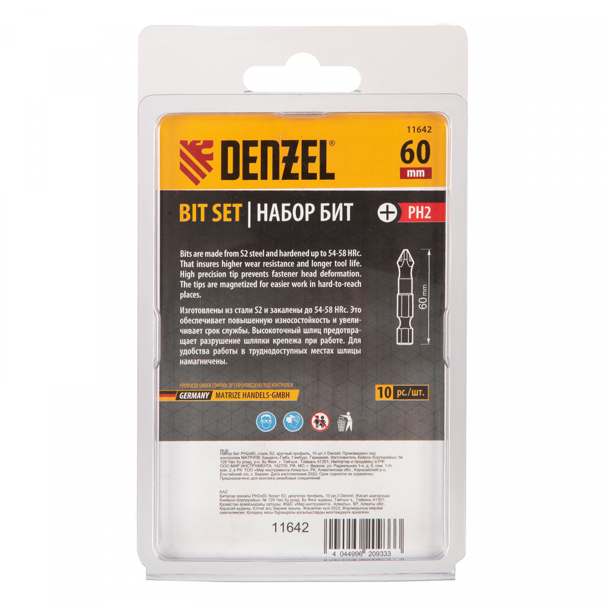 Бита PH2х60, сталь S2, цилиндр., 10 шт. Е 6,3 Denzel