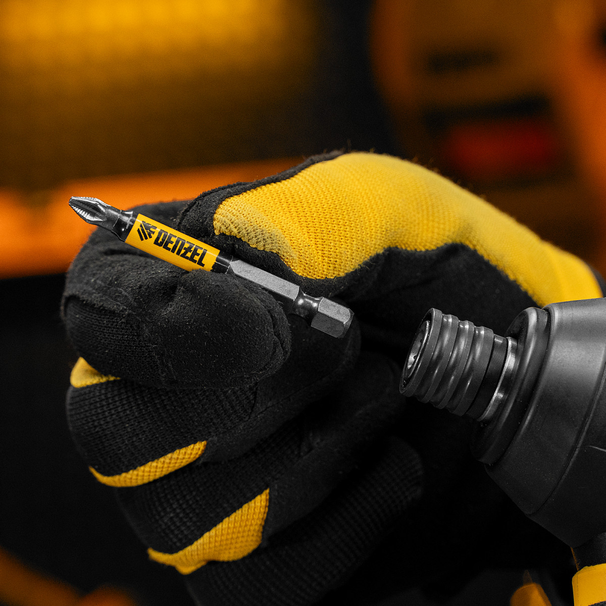 • Долговечность — насечки на шлице препятствуют проскальзыванию и «слизыванию» бит, дополнительно усиливают контроль при работе с саморезами по дереву.