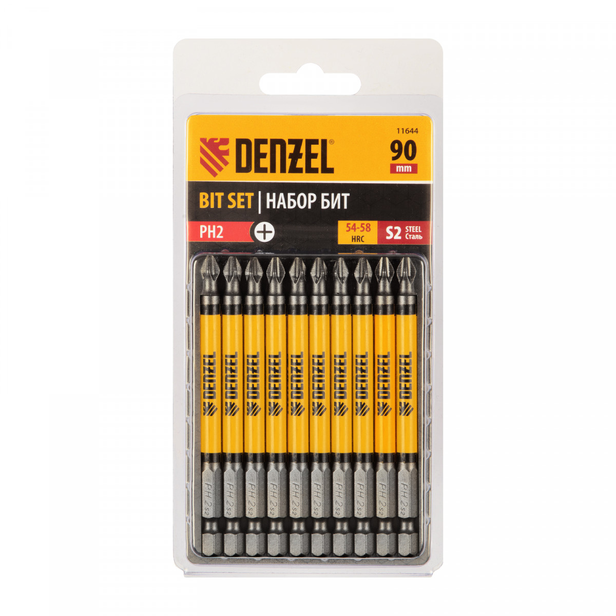 Бита PH2х90, сталь S2, цилиндр., 10 шт. Е 6,3 Denzel