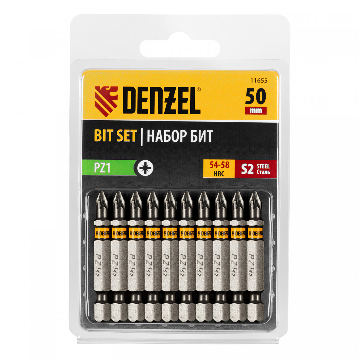 Бита PZ1х50, сталь S2, шестигранный профиль, 10 шт. Е 6,3 Denzel