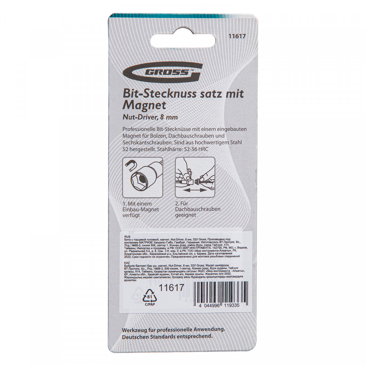 Бита с торцевой головкой, магнит. Nut-Driver, 8 мм, S2 Gross