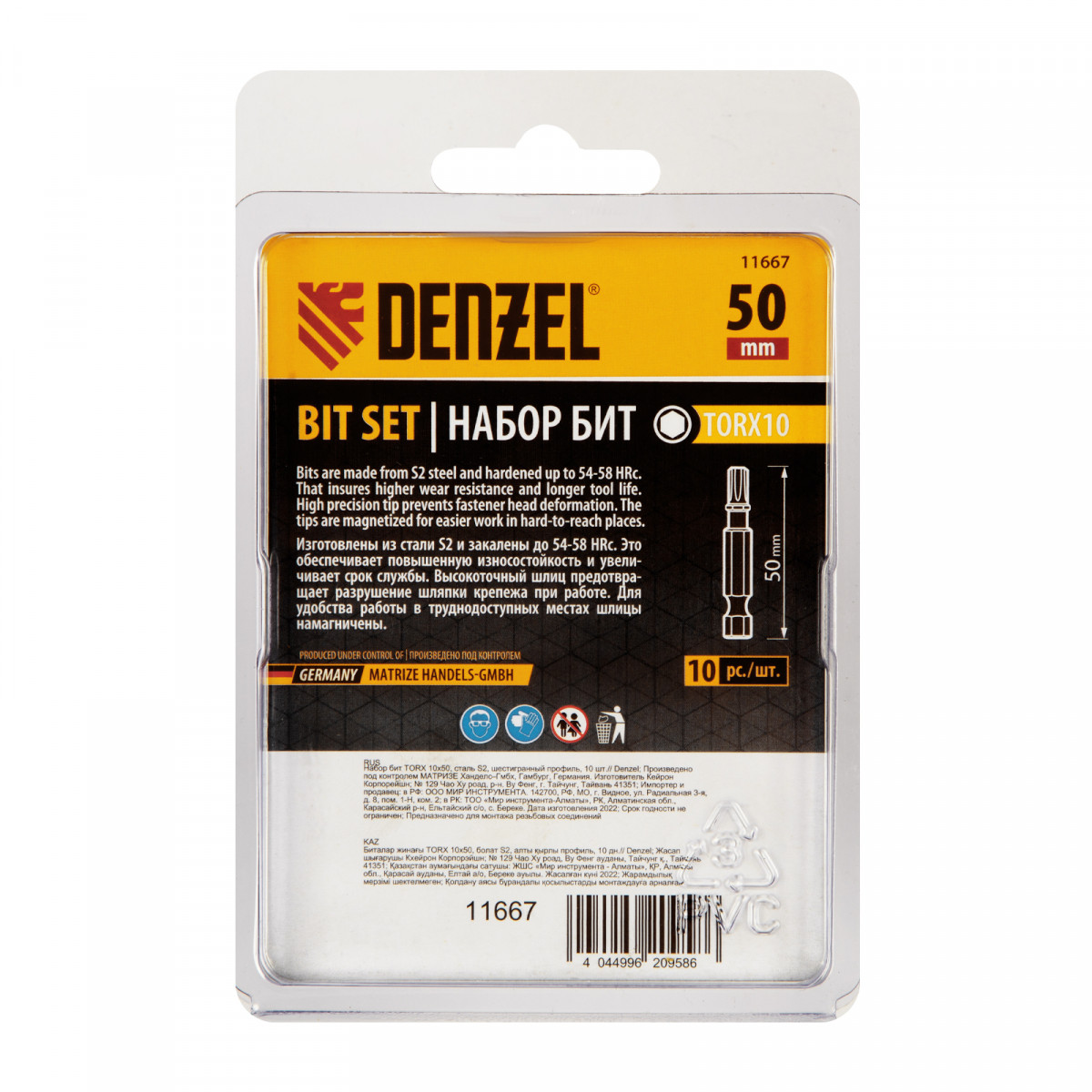 Бита TX 10х50, сталь S2, шестигранный профиль, 10 шт. Е 6,3 Denzel