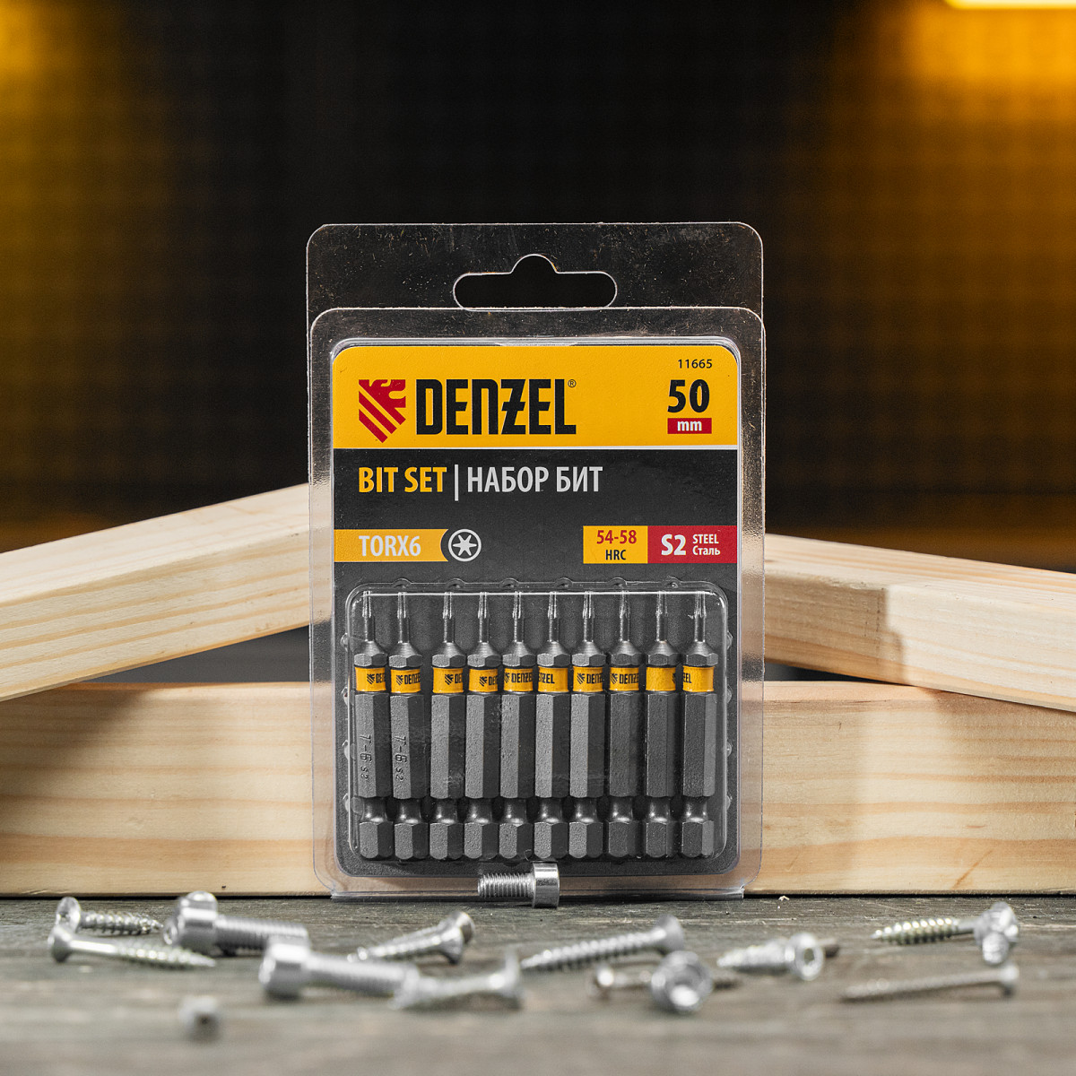 • Каждая бита защищена от подделок — об этом свидетельствует цветное кольцо с логотипом ТМ Denzel.
