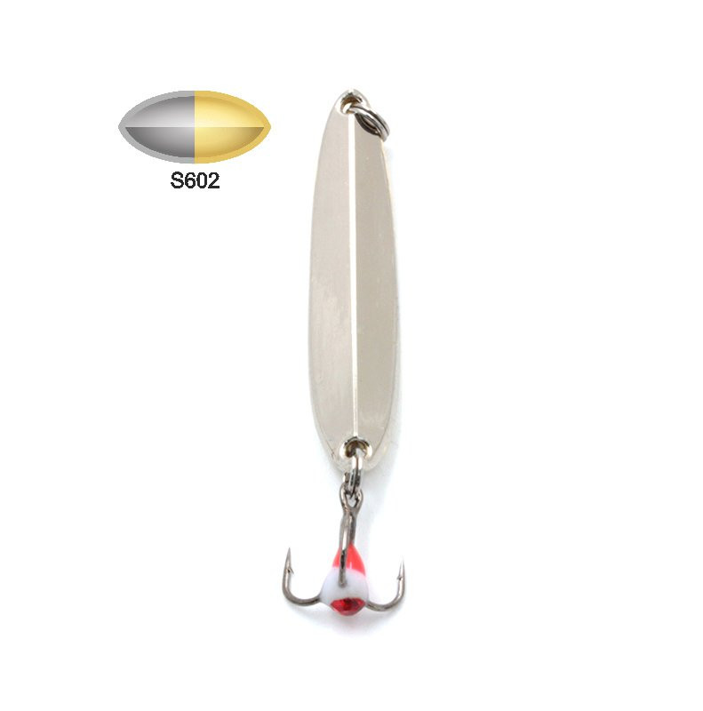 Блесны выполнены из качественных материалов и оснащены острым тройным крючком с цветной каплей, привлекающей внимание хищника. Эта блесна показывает потрясающе естественную игру в спокойной воде и при ловле хищника в местах с течением.У приманки очень красивая, яркая игра с отклонением в сторону от вертикальной оси на подбросах, что напоминает рыскающие движения юркой рыбешки. Эффектно выглядит модель и на плавной анимации. Блестящая поверхность на свету заманчиво бликует.