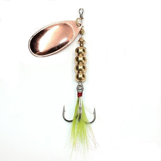Блесна вращающаяся - это вертушка-тандем с двумя лепестками, что удваивает гидроакустический эффект и при проводке создает более сильные высокочастотные колебания, что приманивает любого хищника и делает ее более уловистей. Первый лепесток меньше второго, поэтому вихри, которые создаются за первым лепестком, не влияют на работу последнего лепестка. Лепестки имеют длинную и острую форму, которые прекрасно работают на течении и придонной ловле. Быстро замечают и атакуют такого рода приманки щука.