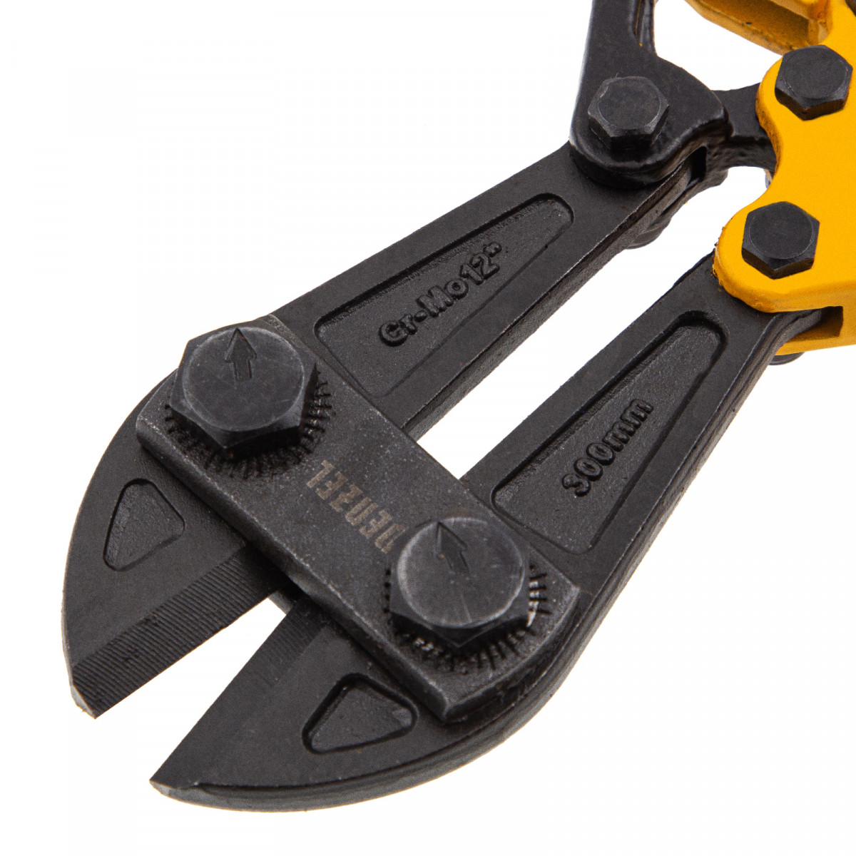Болторез Denzel 78531 длиной 300 мм (12 дюймов), из стали Cr-Mo, предназначен для перекусывания стальных прутков диаметром 4,8 мм, болтов и шурупов, тросов, разнородной проволоки.