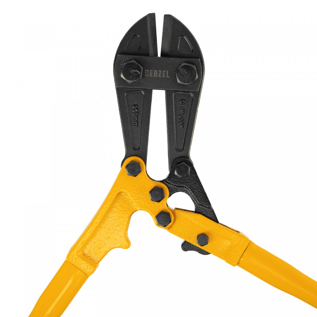 Болторез Denzel 78533 длиной 350 мм (14 дюймов), из стали Cr-Mo, предназначен для перекусывания стальных прутков диаметром 6,4 мм, болтов и шурупов, тросов, разнородной проволоки.