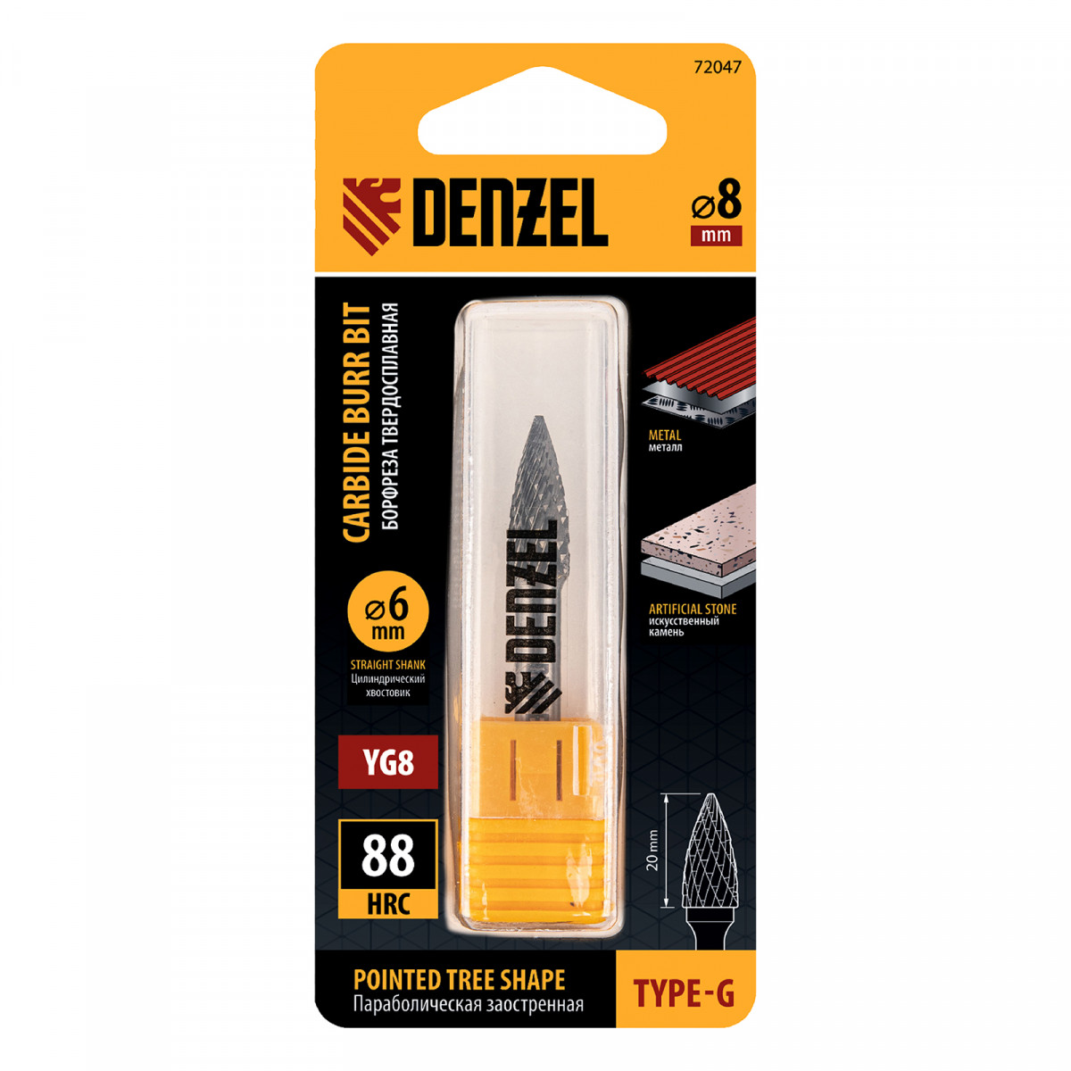 Борфреза по металлу твердосплавная, параболическая заостренная, тип-G, 8 мм Denzel