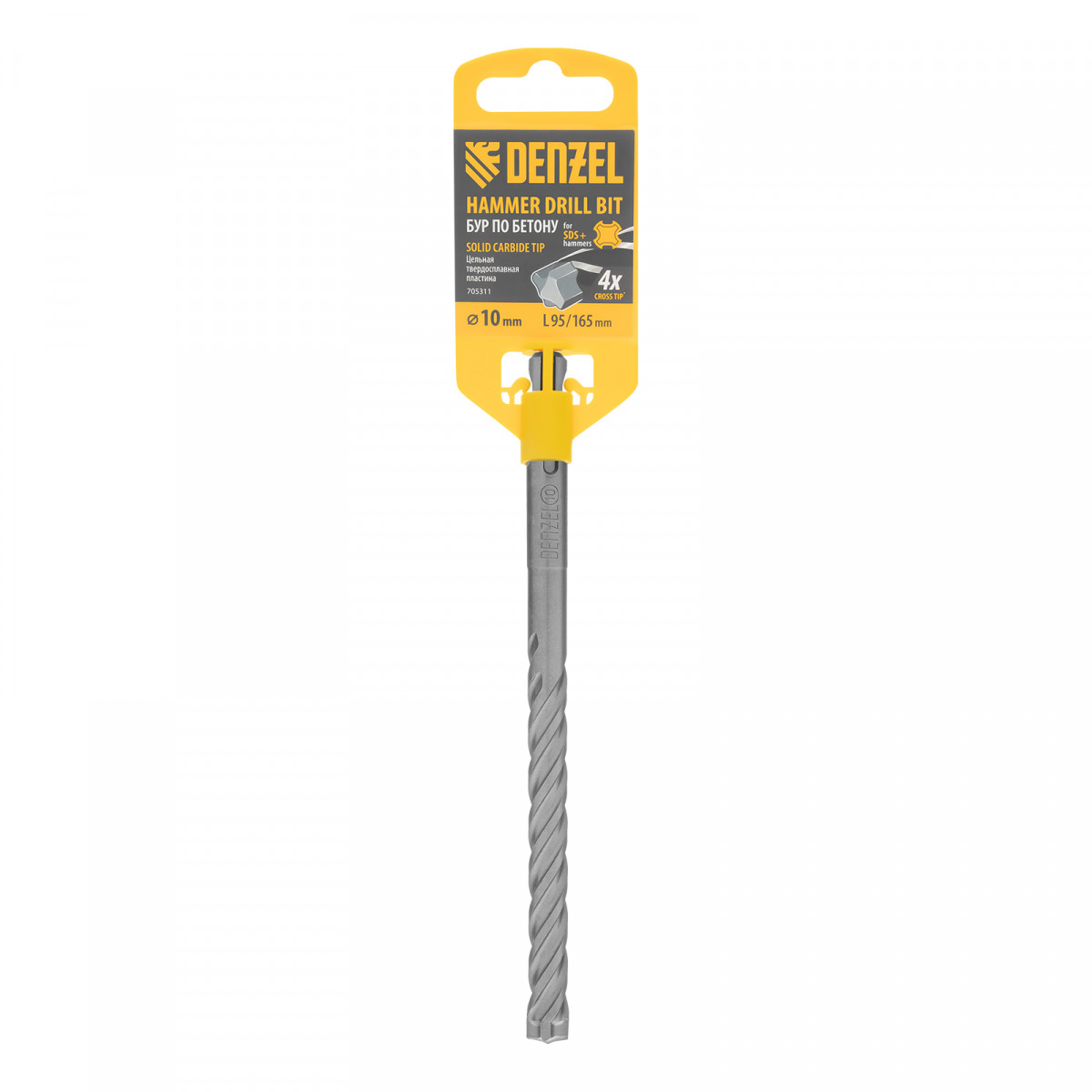 Бур по бетону, цельная крестовая пластина, 10x165 мм, SDS PLUS Denzel