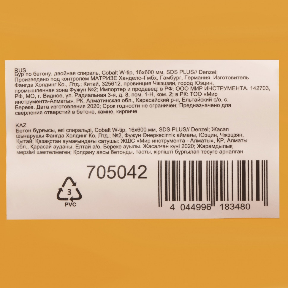Бур по бетону Denzel Cobalt W-tip 705042 размером 16 х 600 мм, с хвостовиком SDS-plus и двойной спиралью, предназначен для сверления бетона, кирпича и камня. Используется в качестве оснастки для перфораторов с патроном SDS-plus. Бур оптимален для проведения строительных, ремонтных, монтажных работ.