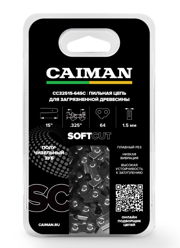 Цепь соответствует лучшим мировым стандартам и обеспечивает высокую производительность. Изготовление цепей производится на высокотехнологичных линиях с использованием современного промышленного оборудования и дополнительного контроля качества.Обеспечивают мягкий и плавный рез, а также более простую заточку по сравнению с чизельными цепями.Снижает вибрацию.Снижают силу обратного отскока и делают пиление более предсказуемым и комфортным.Помогают уменьшить трение и обеспечивают равномерное распределение масла по пильной шине, ведущей и ведомой звездочкам.Упрощает заточку, а также служит индикатором предельного износа цепи: при достижении этой отметки цепь следует заменить.Все пильные цепи CAIMAN являются профессиональными и могут использоваться не только на профессиональных цепных пилах, но и лесозаготовительных машинах (харвестерах).