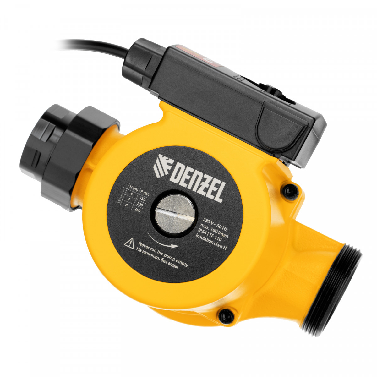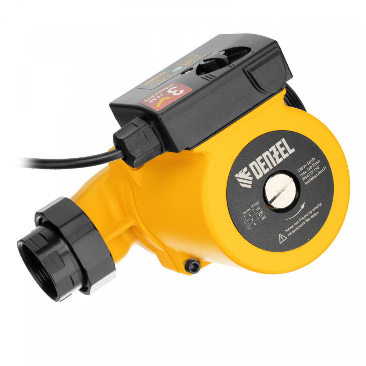 Циркуляционный насос CP32-8, напор 8 м, 160 л/мин, 1 м кабель, монт. длина 180 мм Denzel