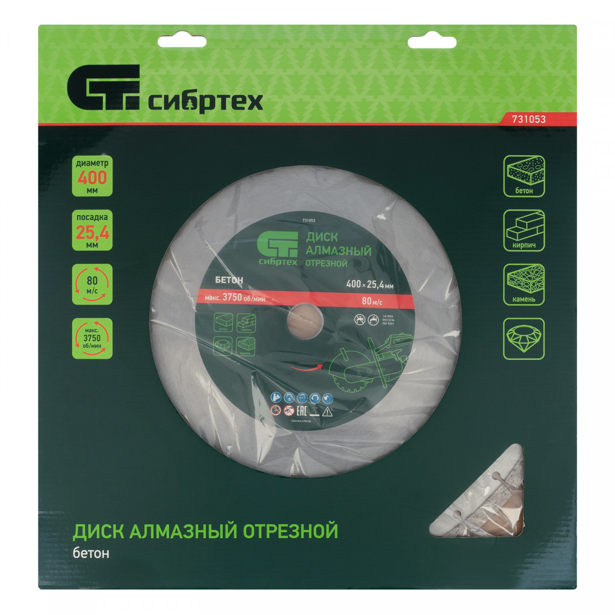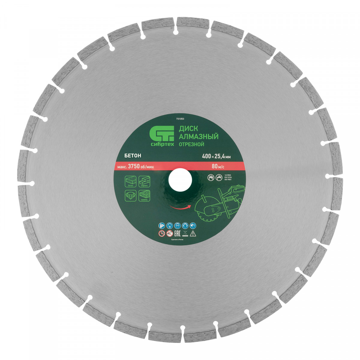 Диск алмазный 400 х 25.4 мм, "Бетон", сухой/мокрый рез Сибртех