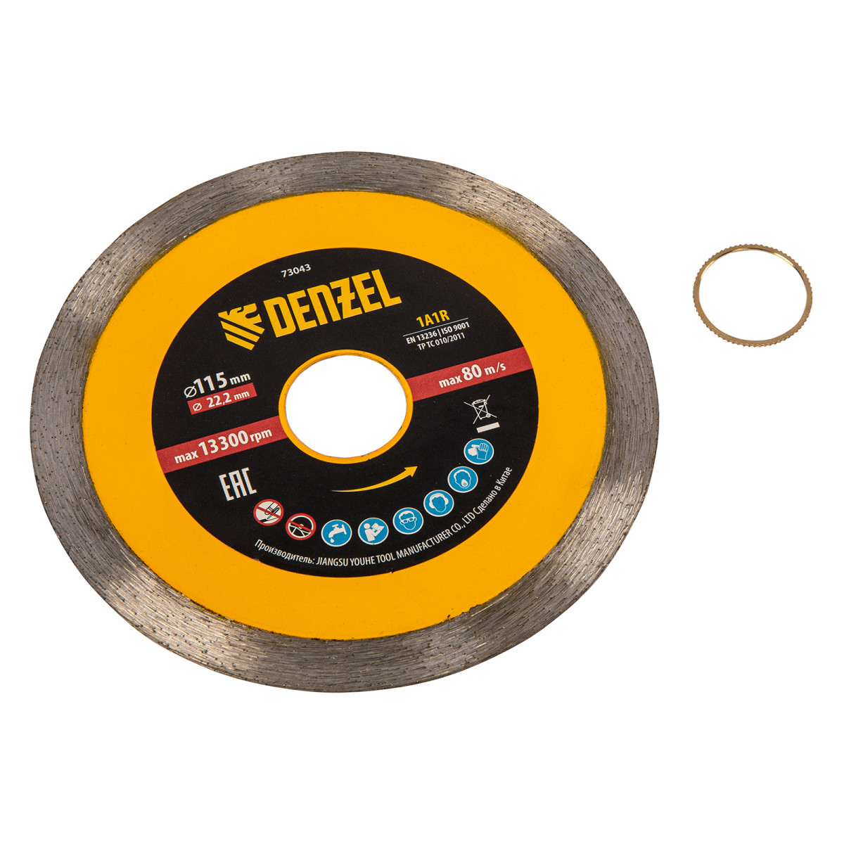 Диск алмазный отрезной 115 х 22,2 мм, сплошной, супертонкий, горячий пресс, мокрое резание Denzel