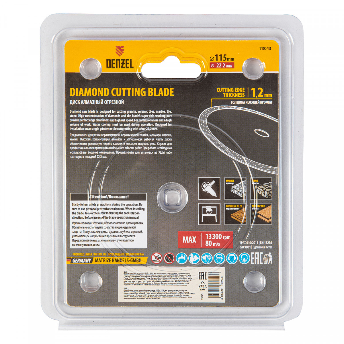 Алмазный диск ТМ Denzel "Сплошной" арт 73043, ф115 х 22,2 мм, предназначен для мокрого резания мрамора, керамогранита и керамическую плитки, камня. Устанавливается на УШМ (болгарку) или плиткорез с посадочным диаметром 22,2 мм. Высокая концентрация алмазов и супертонкая рабочая часть диска обеспечивает идеальную частоту кромок и высокую скорость реза.Диск произведен по технологии горячего прессования с увеличенной шириной режущей кромки (10мм) подходит для профессионального использования и больших объемов работ.