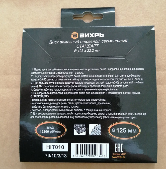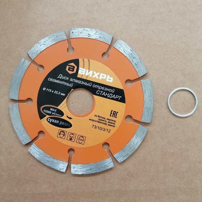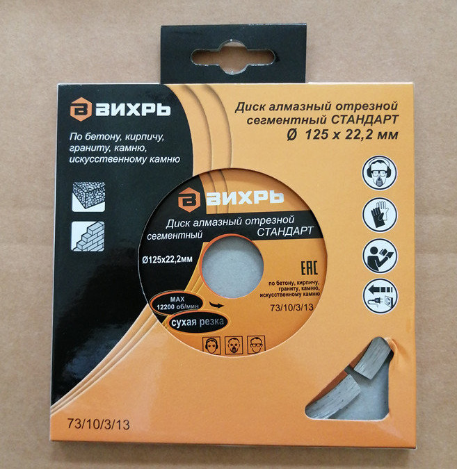 Диск алмазный отрезной сегментный СТАНДАРТ, 125 х 22,2 мм, сухая резка Вихрь - это алмазный отрезной диск, который используется совместно с угловыми шлифмашинами (болгарками) для сухой резки гранитных, бетонных, кирпичных и каменных изделий.