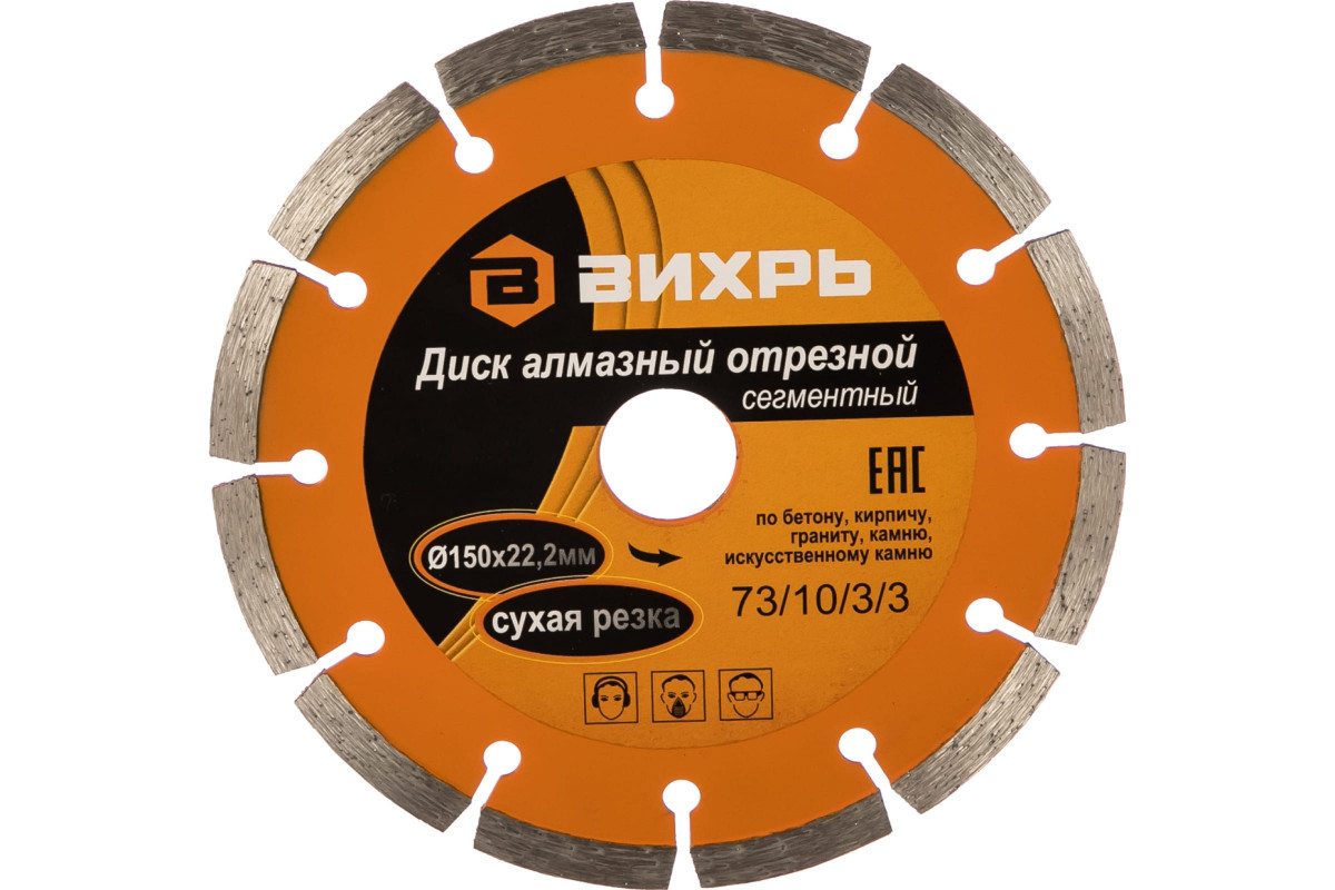 Диск алмазный отрезной сегментный 150х22,2 мм сухая резка Вихрь