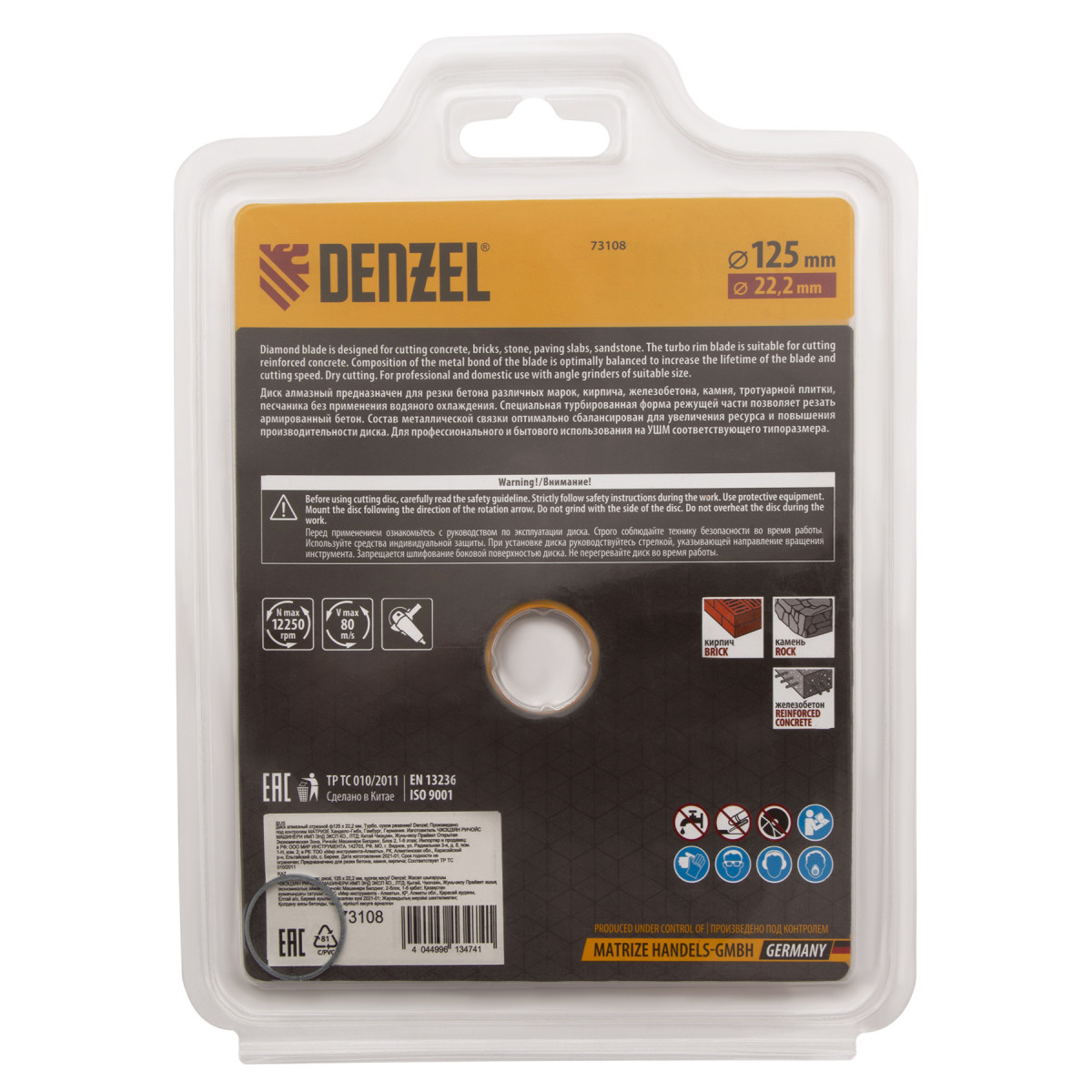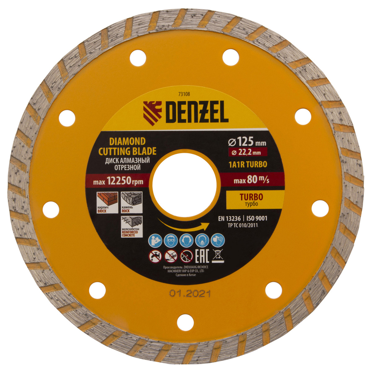 Диск алмазный, отрезной Turbo, 125 х 22.2 мм, сухая резка Denzel