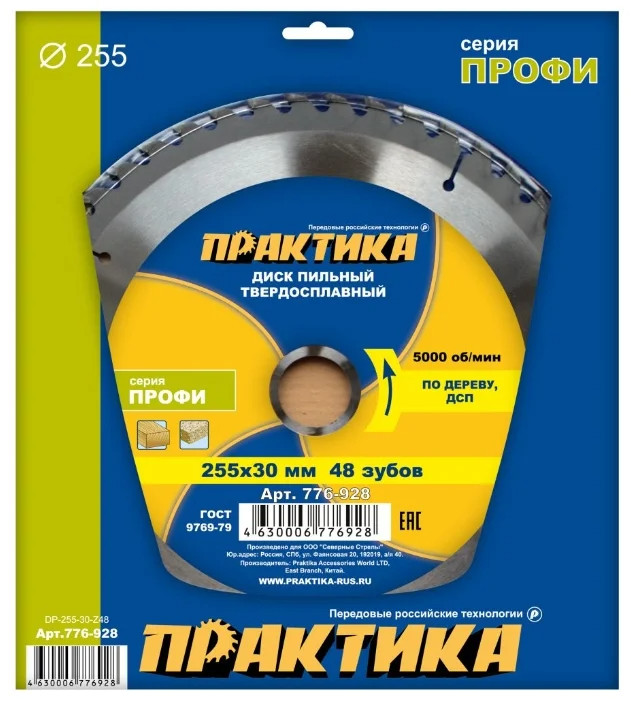 Диск пильный 255*30мм твердосплавный по дереву "Практика"