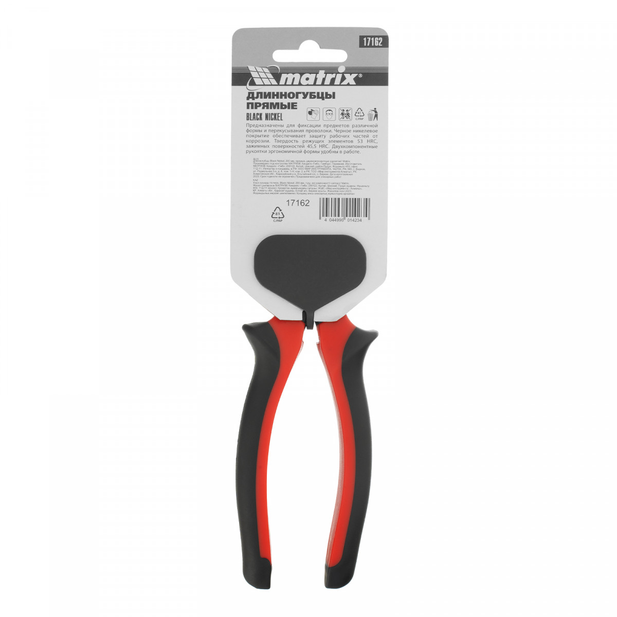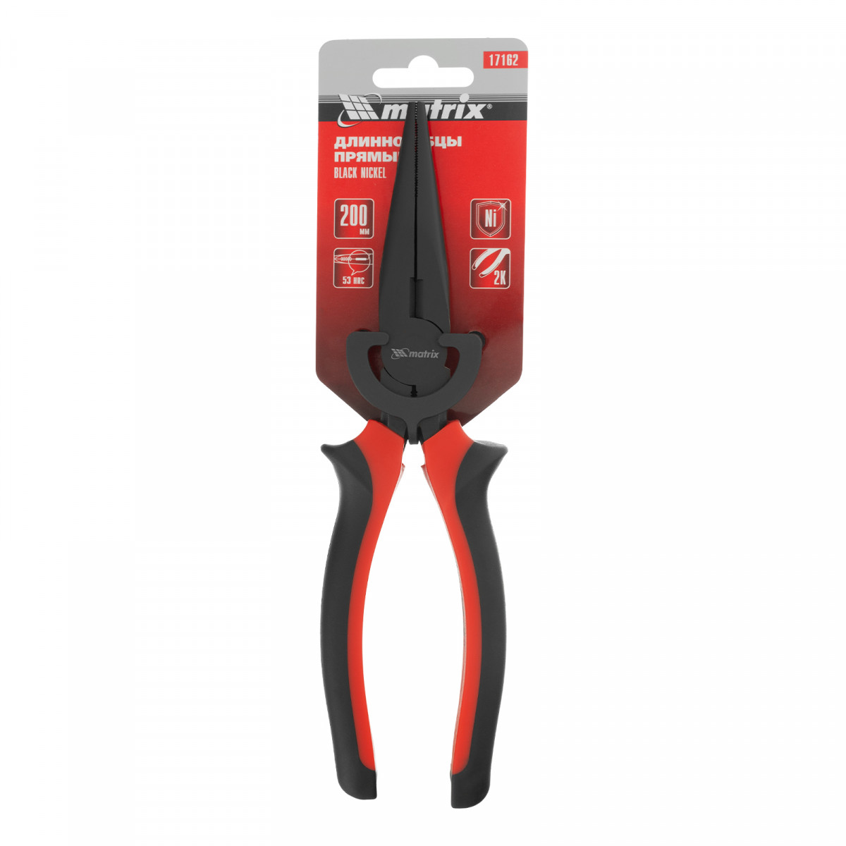 Длинногубцы прямые Black Nickel, 200 мм, двухкомпонентные рукоятки Matrix