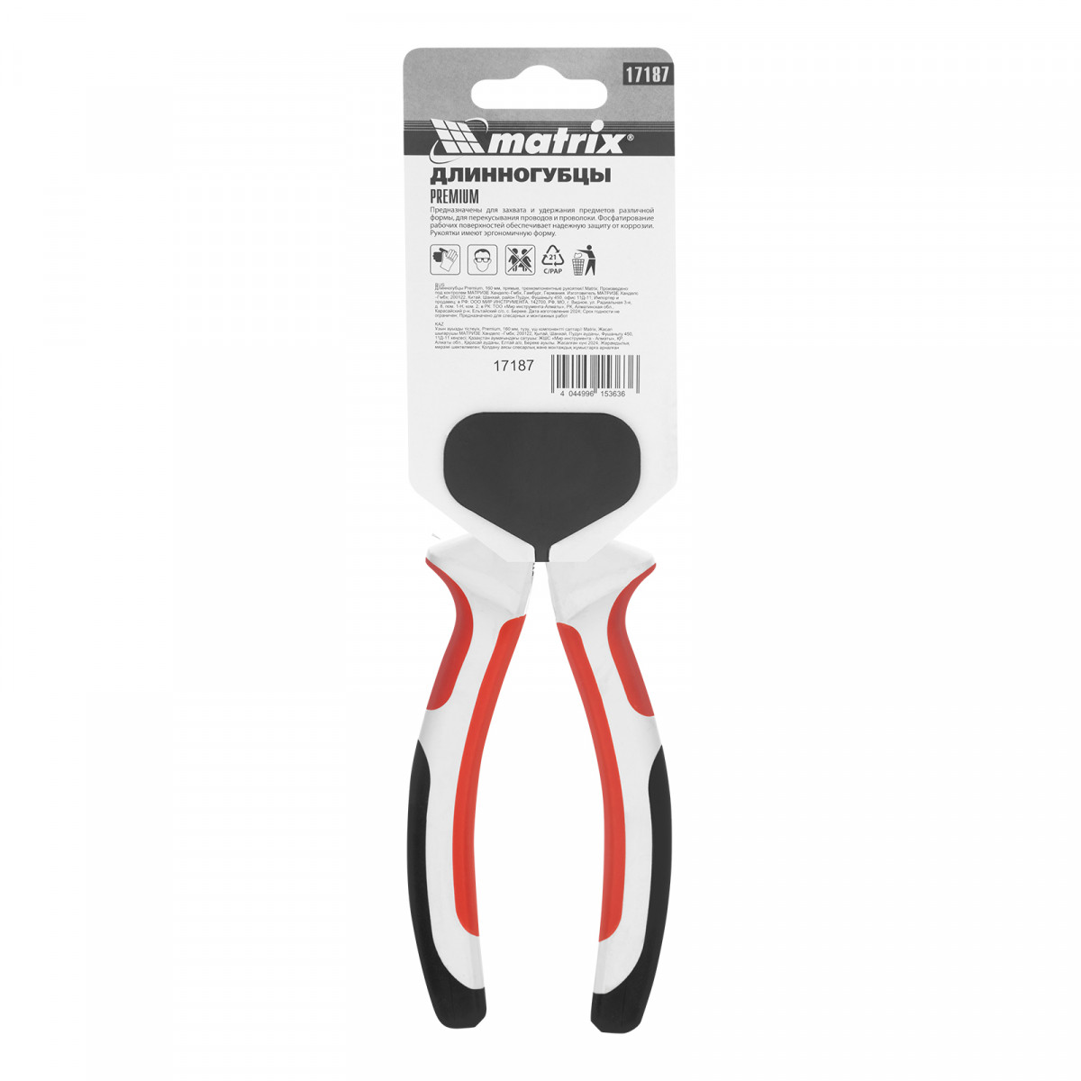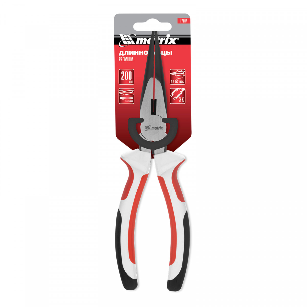 Длинногубцы прямые Premium, 200 мм, трехкомпонентные рукоятки Matrix