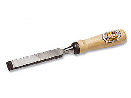 Лезвие стамески изготовлено из инструментальной углеродистой стали У7–У8. Рукоятка из древесины обработана бесцветным лаком для защиты от рассыхания и набухания, имеет на своем конце металлические кольца, препятствующие образованию расколов при ударе молотком. Используется в столярных работах.