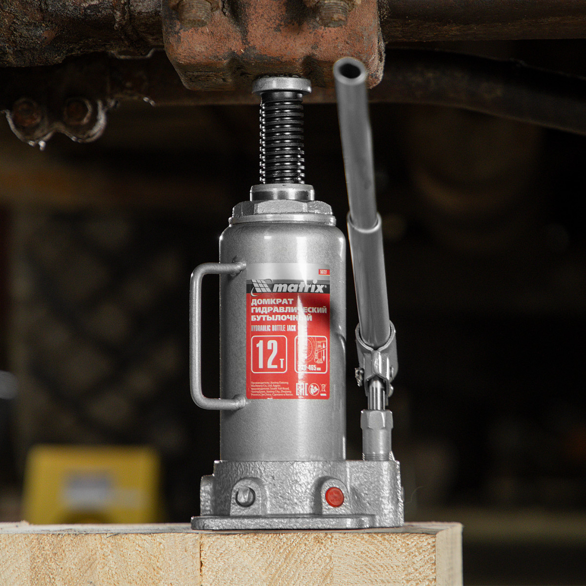 Домкрат гидравлический бутылочный Matrix 50727 используется для поднятия грузов массой до 12 т на высоту 230-465 мм. Подходит для автомобилей с высоким клиренсом. Домкрат будет полезен автолюбителям в гараже и дороге, а также сотрудникам СТО.