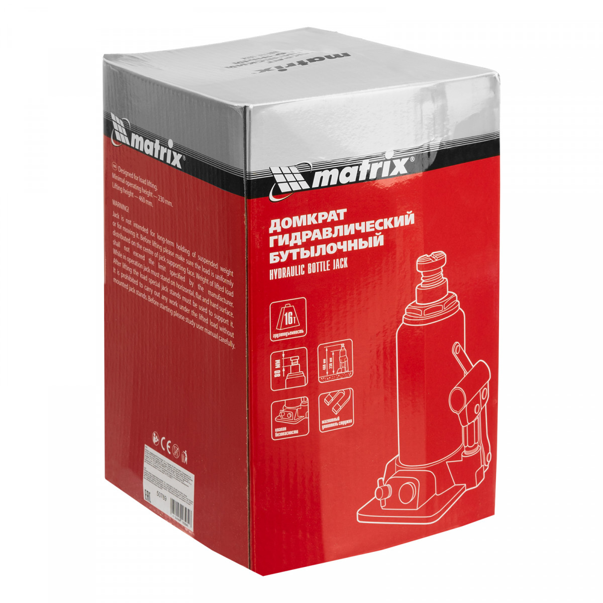 Домкрат гидравлический бутылочный, 16 т, h подъема 230-460 мм Matrix