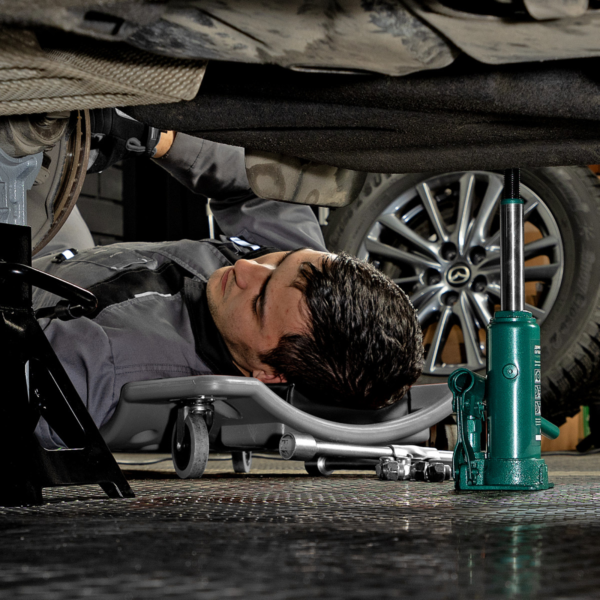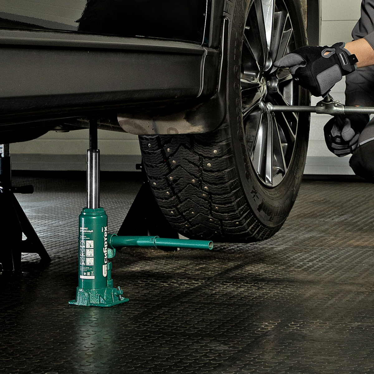• Удобное хранение и транспортировка — домкрат весит всего 2,2 кг, а благодаря съемному рычагу не занимает много места.