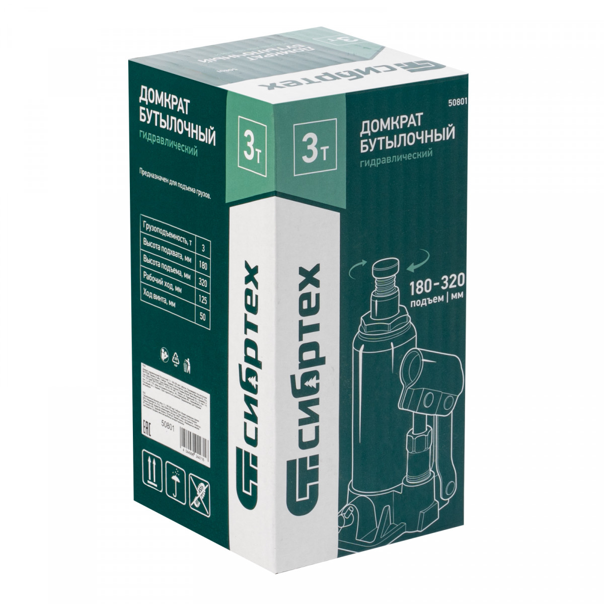 Домкрат гидравлический бутылочный, 3 т, 180-320 мм Сибртех