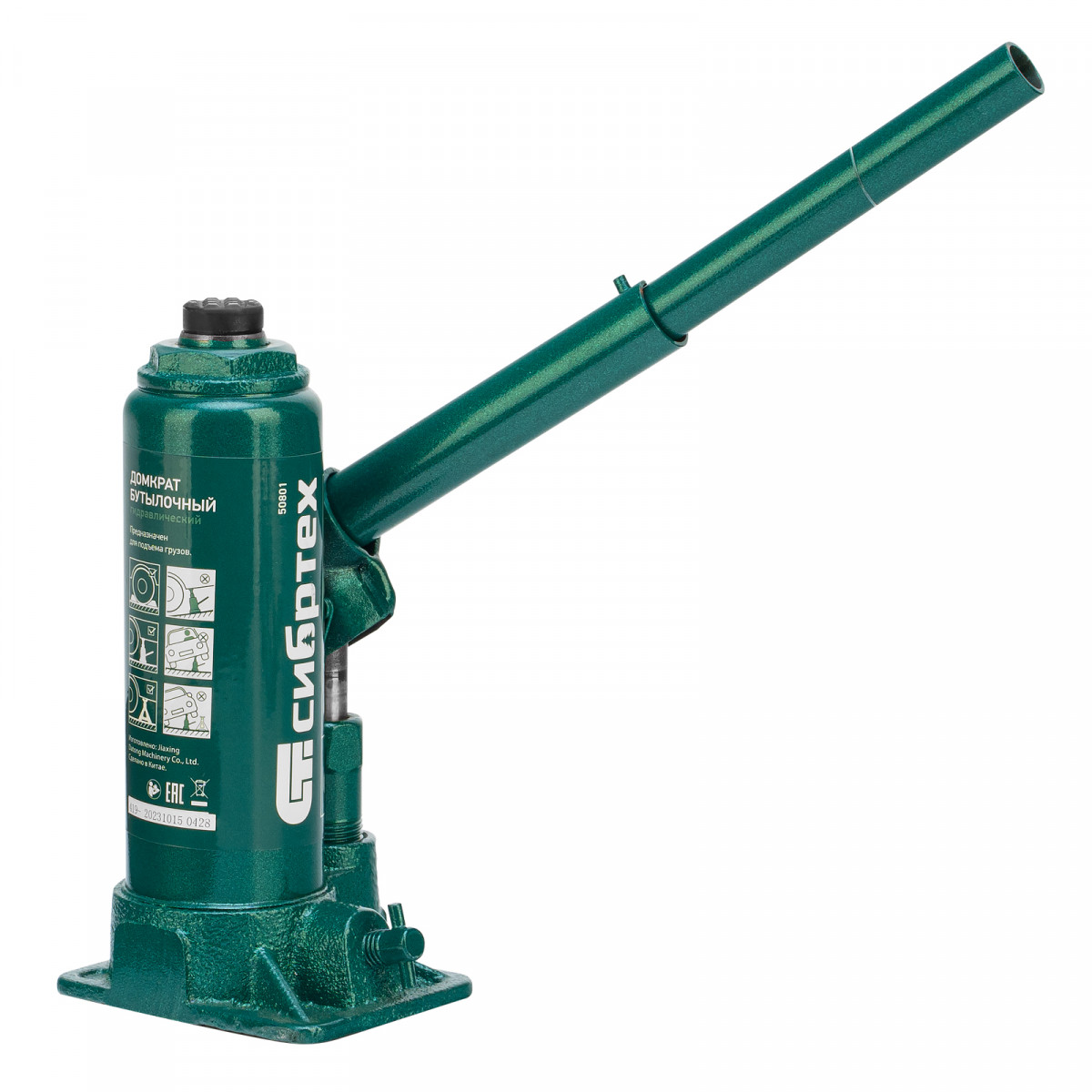 Домкрат гидравлический бутылочный Сибртех 50801 предназначен для подъема грузов массой до 3 т на высоту от 180 до 320 мм. Не требует больших усилий от пользователя и значительно облегчает рабочий процесс. Домкрат будет полезен при проведении техобслуживания машины в автосервисе или гараже.