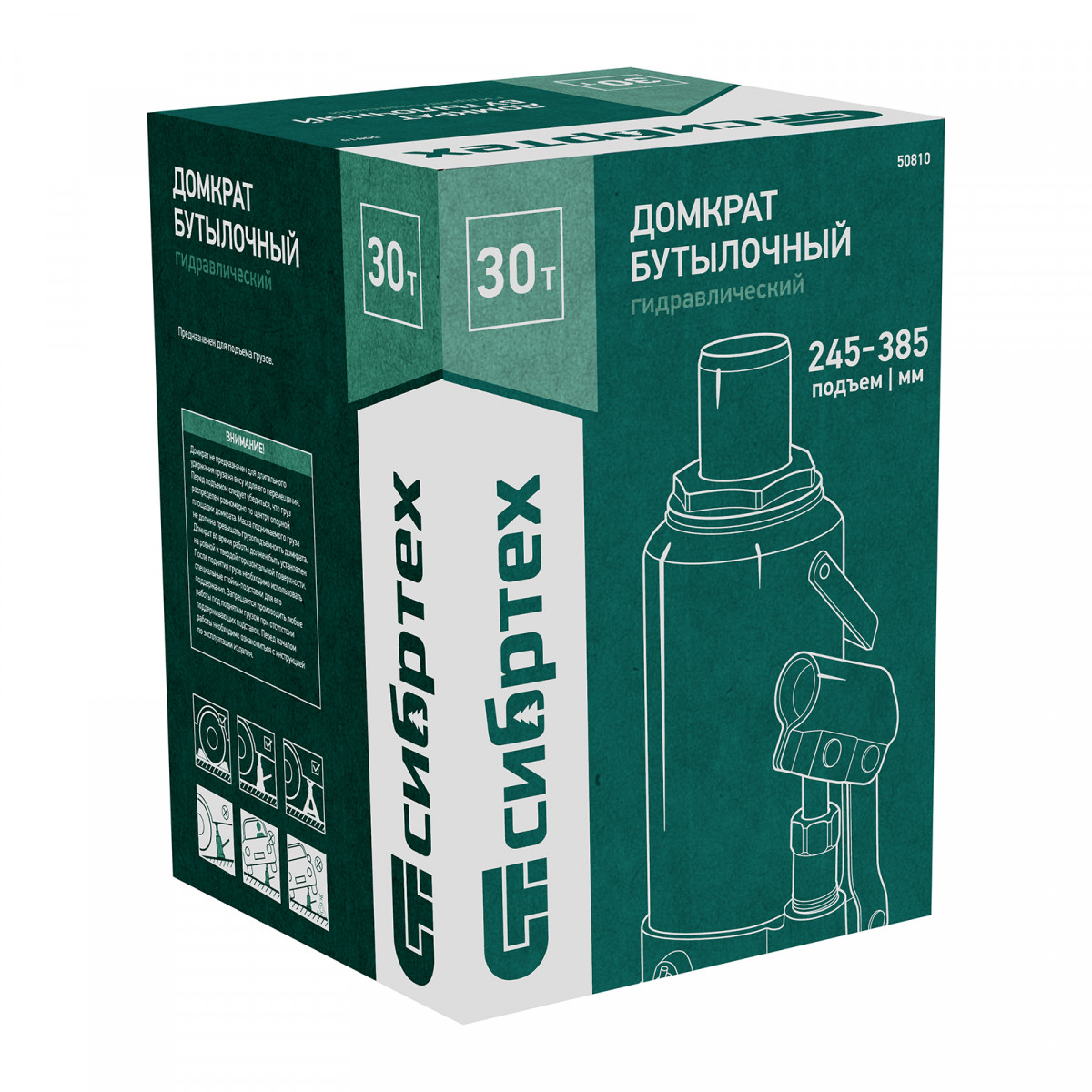 Домкрат гидравлический бутылочный, 30 т, 245-385 мм Сибртех