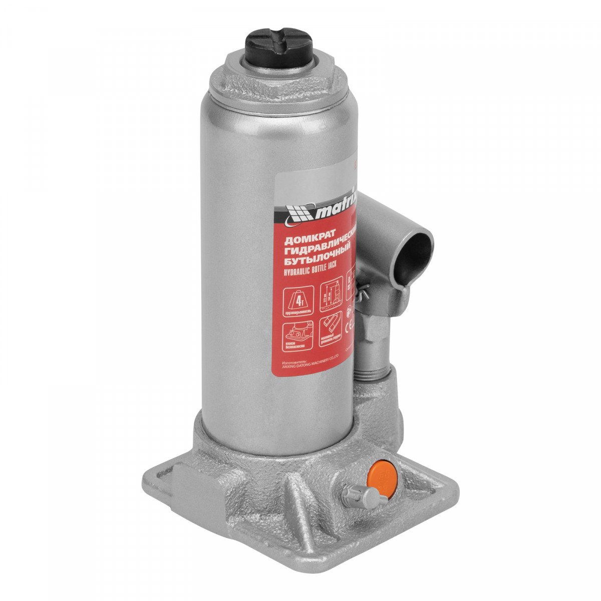 Домкрат гидравлический бутылочный, 4 т, h подъема 194-372 мм, в пластиковом кейсе Matrix