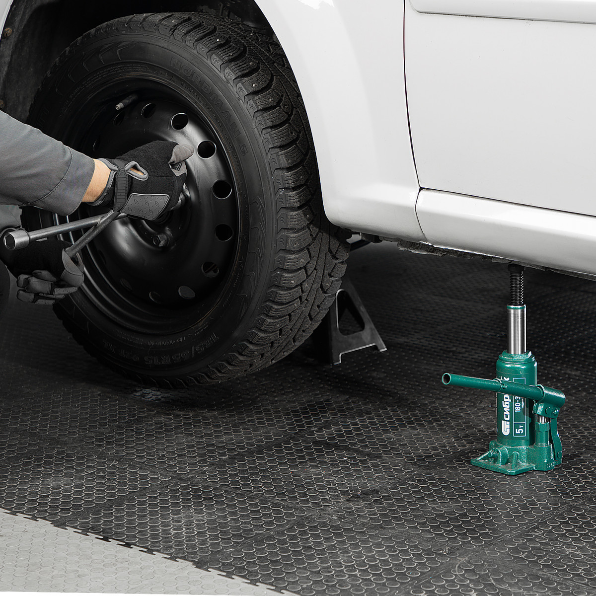 • Удобное хранение и транспортировка — домкрат весит всего 2,8 кг, а благодаря съемному рычагу не занимает много места.