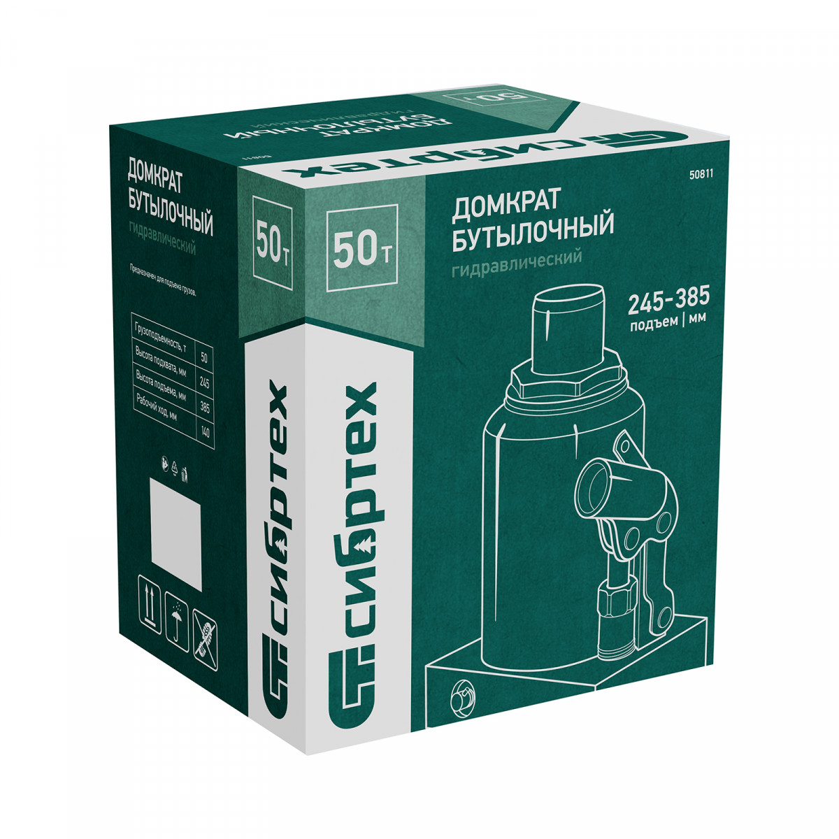 Домкрат гидравлический бутылочный Сибртех 50811 предназначен для подъема грузов массой до 50 т на высоту от 245 до 385 мм. Будет полезен при проведении техобслуживания машины в автосервисе или гараже.