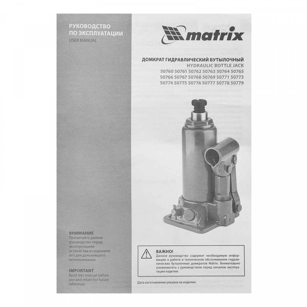 Защита от перегрузки — клапан безопасности не допускает поднятия груза более 6000 кг.