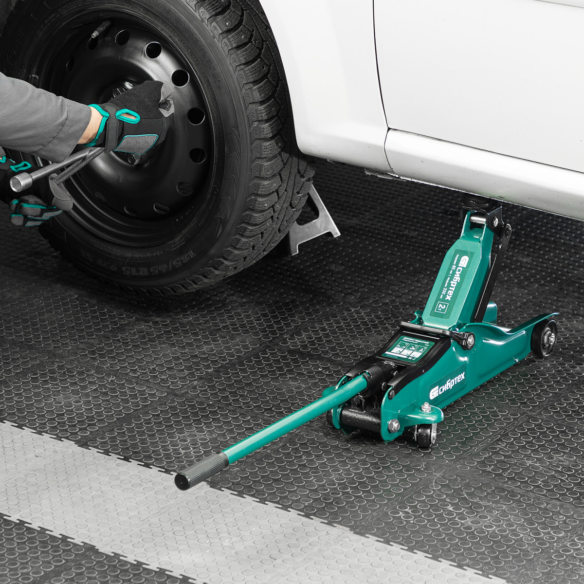• Маневренность — благодаря поворотным колесам домкрат можно быстро подвести под груз.
