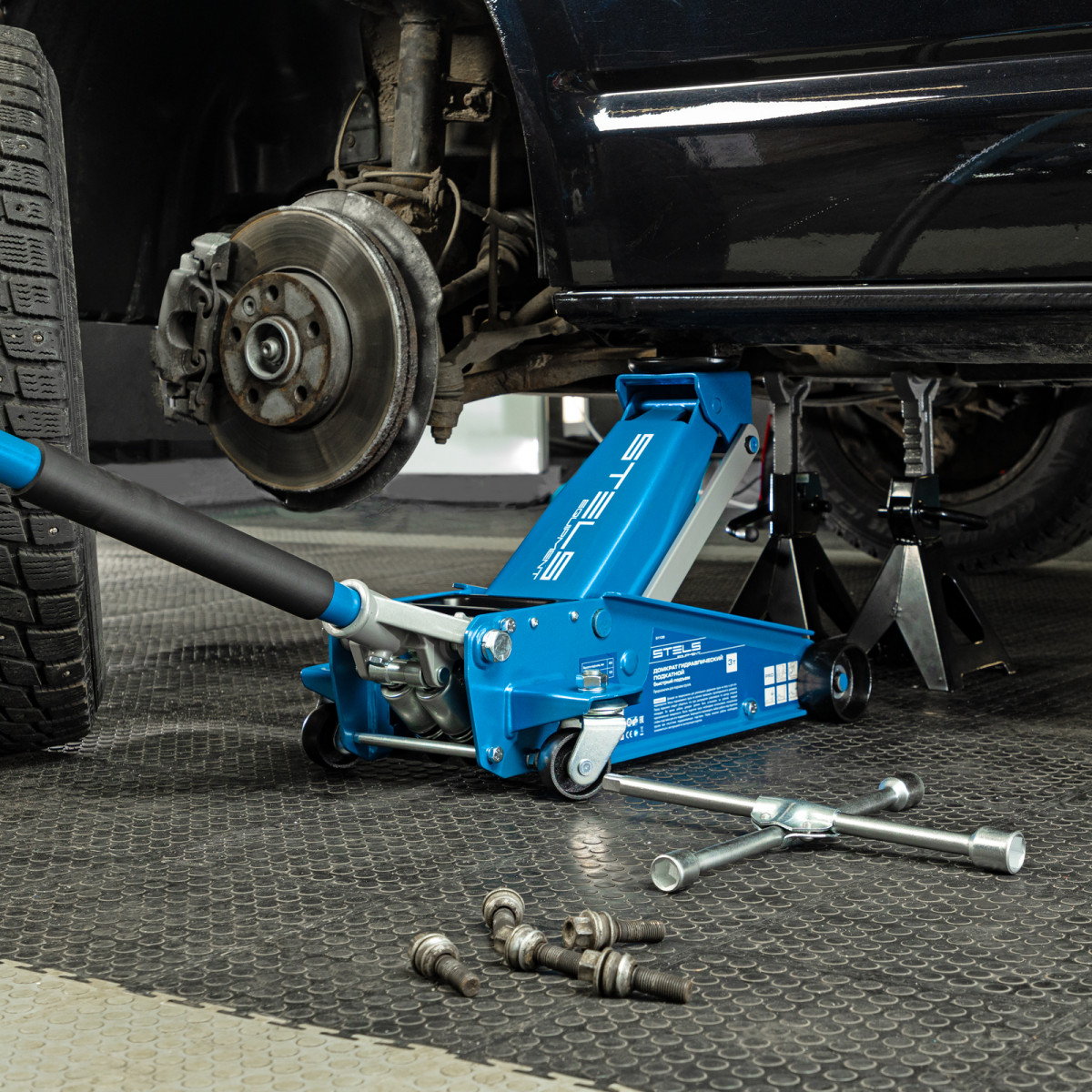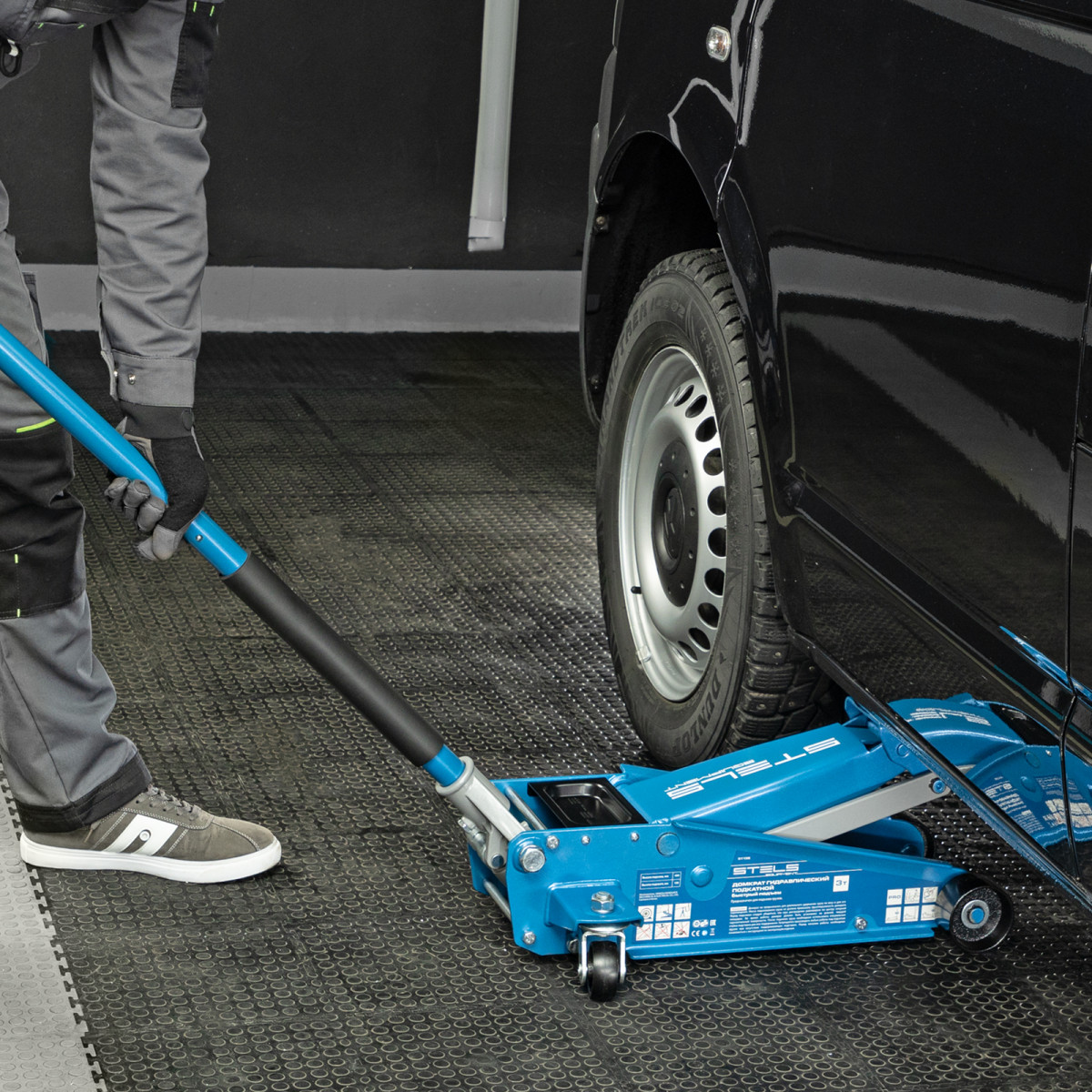 - Аккуратная работа — резиновая опора и прорезиненная рукоятка защищают кузов и днище автомобиля от повреждений.
