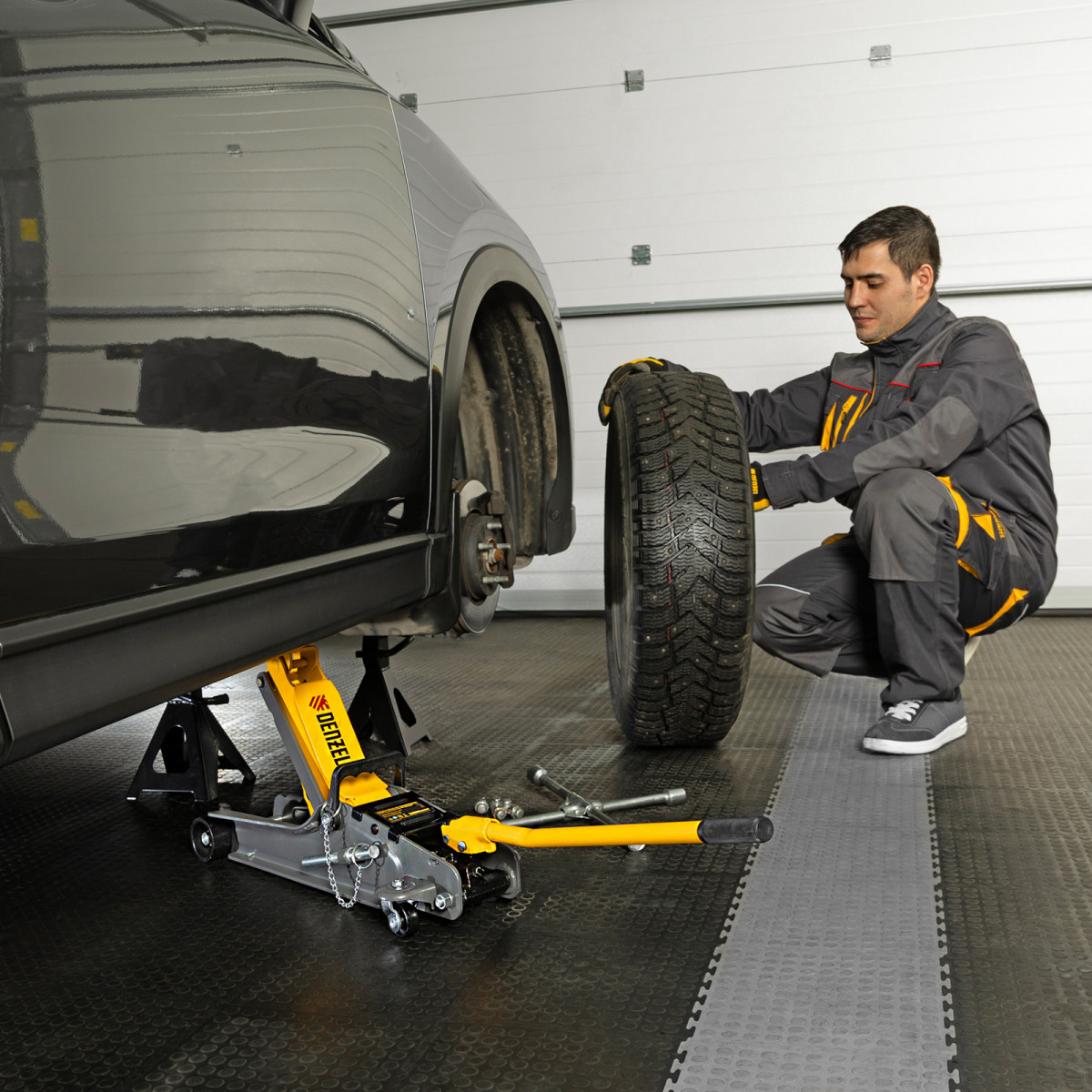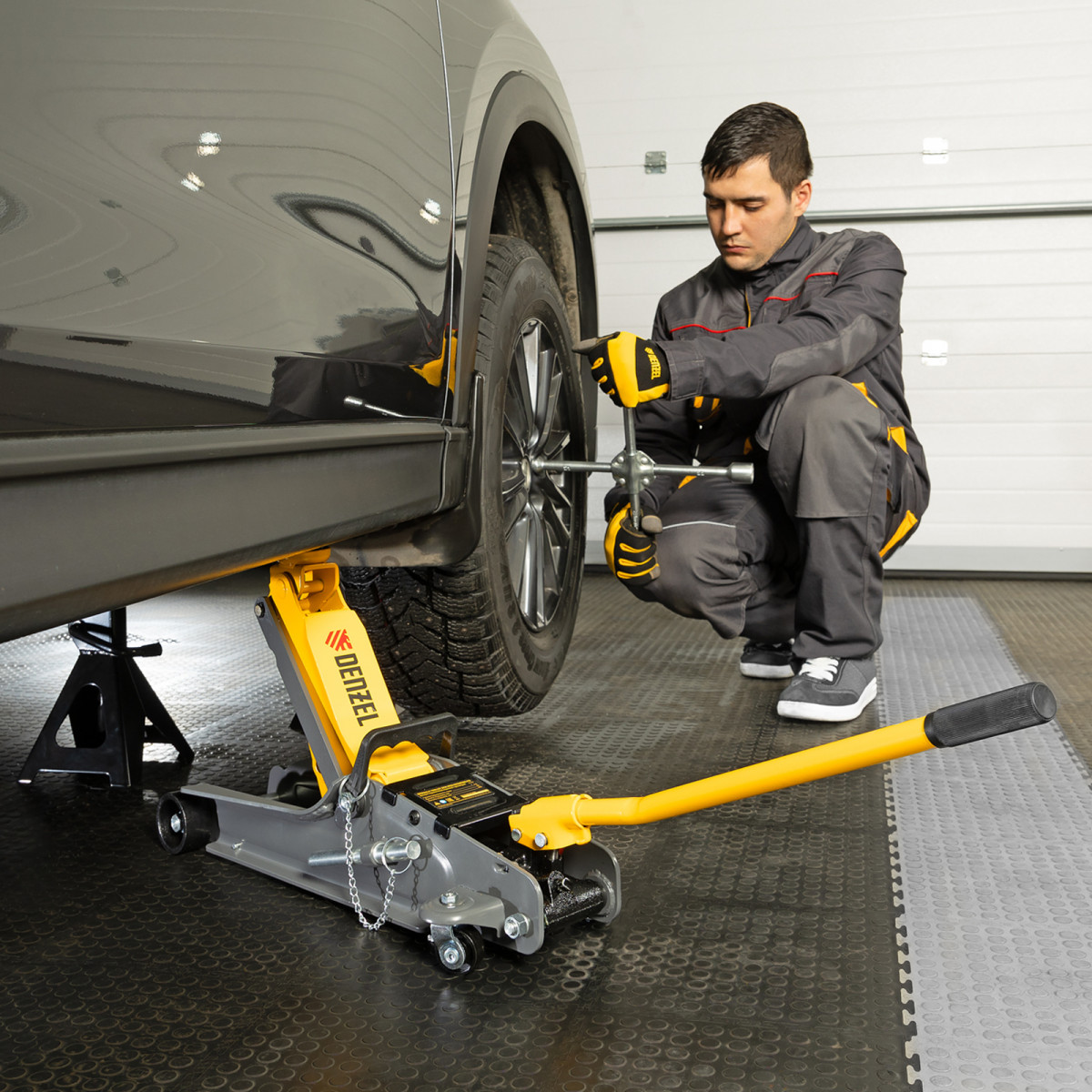 • Аккуратная работа — резиновая опора защищает днище автомобиля от нежелательных повреждений.