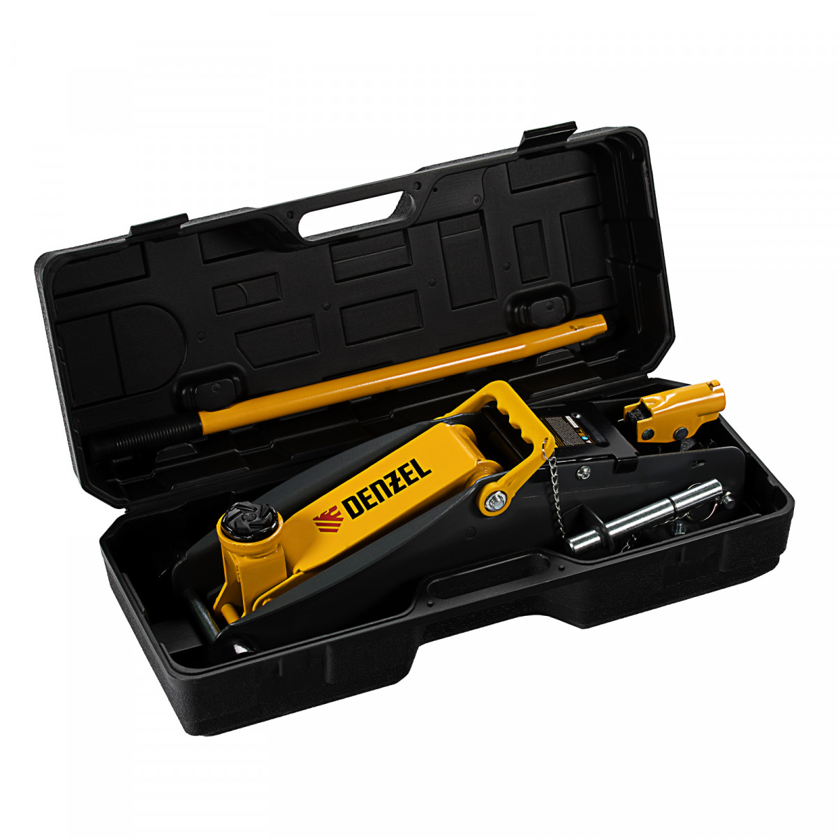 Домкрат гидравлический подкатной с фиксатором, 2,8 т, 135-385 мм, в кейсе Denzel