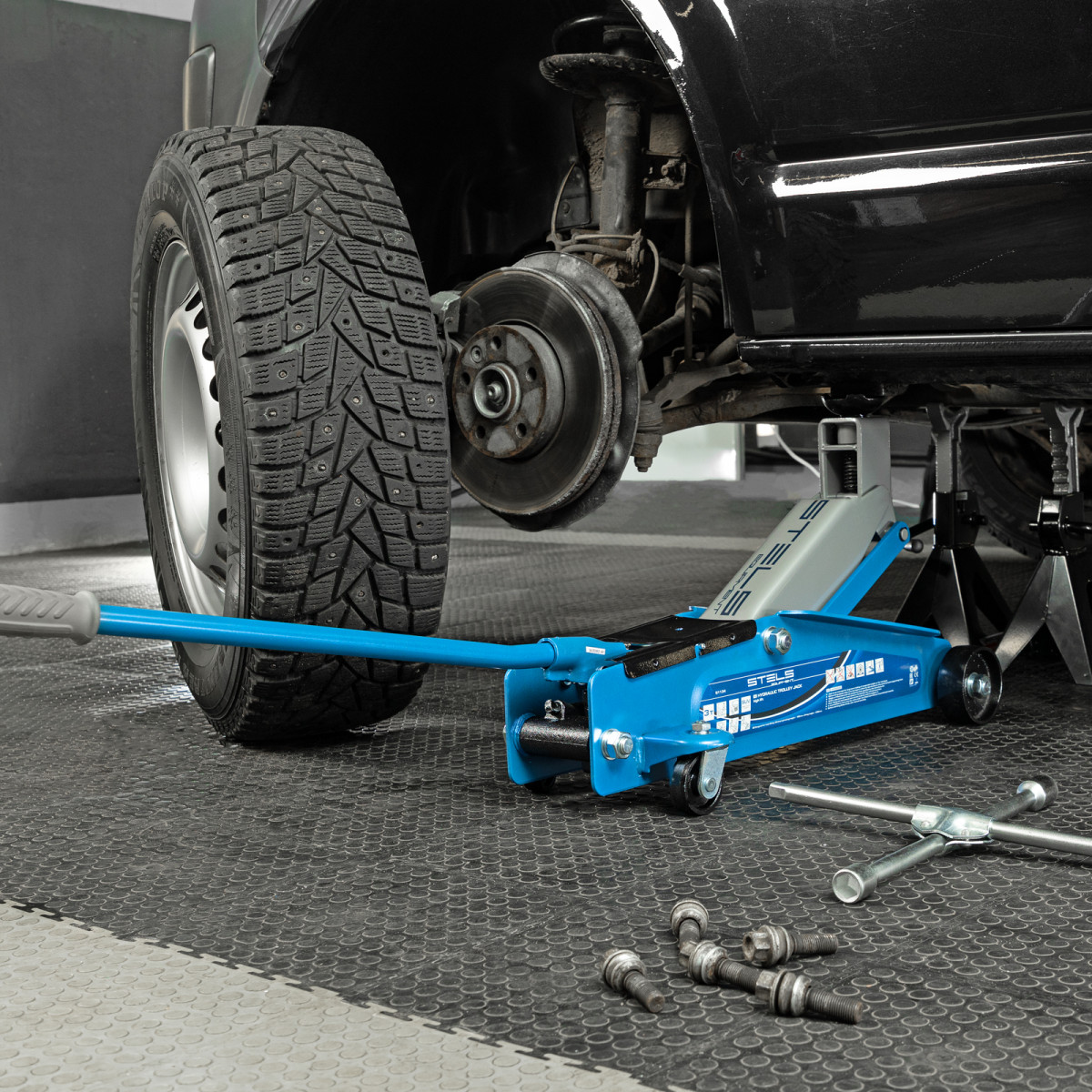 Подкатной гидравлический домкрат Stels 51134 с высоким подъемом 190 мм позволяет поднимать грузы весом до 3 т на высоту 535 мм и подходит для автомобилей класса SUV с увеличенным дорожным просветом. Может использоваться для самостоятельного обслуживания авто.