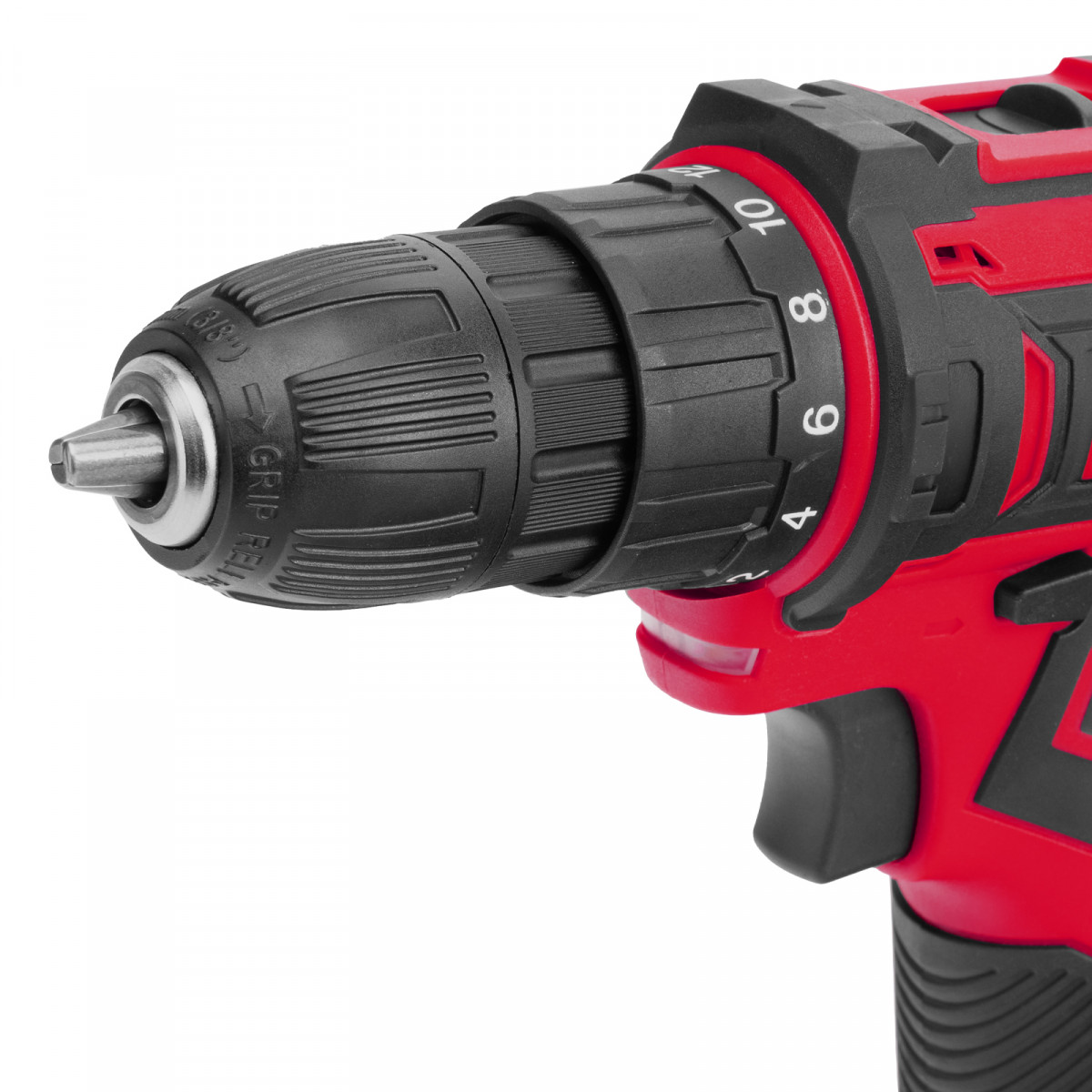 Дрель-шуруповерт аккумуляторная - 1 штБатарея аккумуляторная - 2 штУстройство зарядное - 1 штБита - 1 штИнструкция по эксплуатации с гарантийным талоном - 1 штПластиковый кейс - 1 шт