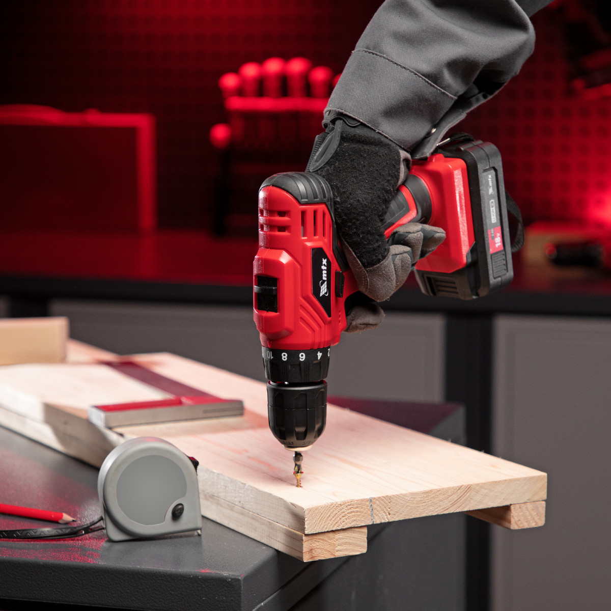 Аккумуляторная дрель-шуруповерт MTX MCDL-18-02 26185 работает от аккумуляторной батареи Li-Ion 18 В емкостью 2 А·ч и развивает крутящий момент до 30 Н·м. Предназначена для закручивания и откручивания резьбового крепежа, а также сверления отверстий в металле (диаметром до 6 мм), древесине (до 20 мм), пластмассе и других материалах. В комплекте с инструментом идут сразу два аккумулятора, что позволит избежать перерывов в работе